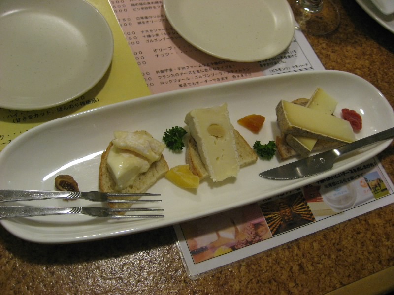 ビールががなくなったので、ワインをいただきましょう。そろそろお店もにぎやかになってきて、もうほぼ満席の状態。われわれの隣には仕事仲間らしき男女が座った。屋台のご主人とは顔なじみらしく、盛り上がってきている。そうなるといつのまにやら、大阪から来たことや豚丼なに食べたとかといったネタからわれわれの話へとなっていく。そしてそのお二人が頼んだ長芋のカルボナーラ風を、その女の人が「せっかくなんで一緒にたべませんか」なんとビックリ、ありがたいことです。確かに2人じゃちょっと多いかもしれないが、初対面で一緒に食べませんかというのはなかなかないよね。せっかくなどで有難くいただきつつ、われわれが頼んだビーフシチューも少しおすそ分け。こうしていただいた長芋もおいしいし、またこのビーフシチューがうまい。屋台でここまでのものが出せるんだね。いろんな話をしながら、どうやらこのご主人はかなり唄がうまいらしく、かつてポプコンなどにも出たことがあるらしいが、松山千春と中島みゆきの牙城はどうにも崩せなかったとのこと。どこまで本当かはわからないが、確かにそんな雰囲気は持っている人かな。その後、お二人が頼んだつぶ貝のチーズフォンデュも「一緒に食べませんか」ということで恐縮しながらもありがたくいただく。プリプリ感のあるつぶ貝と十勝チーズのコラボ、かなりありです、おいしいです。もう少しワインがあるので、あとはチーズの盛り合わせをいただく。これもすべて十勝のチーズ、新得町の共働学舎などのチーズ工房で作られたものらしい。十勝のチーズ工房めぐりなんてのも面白そうだね。いつのまにやら、そろそろ11時。他の屋台にも行こうとも思っていたが、妙に居心地のいいこの屋台を十分堪能しました。おなかもいっぱいになったし、ごちそうさまでした。そしていろいろと、ありがとうございました。楽しい屋台、また来れたらいいな。