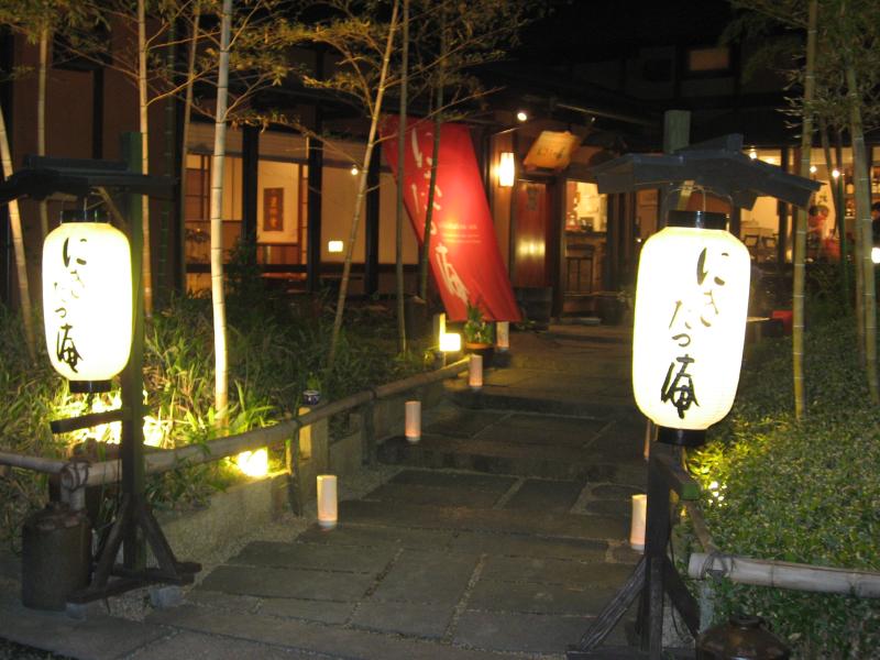 さて、そろそろ晩ごはん。地ビールやさんに行こうかと思ったが、のぞいてみるとかなり賑わっている。なので去年道後に来たときに地酒を買った水口酒造の向かいにある「にきたつ庵」、ここが妙に気になっていた。禁煙席が空くのに少しだけ待ったが、広くてゆったりした席につくことができた。さて、どうしましょうか。ここでも道後地ビールを飲むことができるが、いろいろ飲みたいので一口セットを頼もう。セットのおつまみは乾き物で、ここはもっと瀬戸内らしいものが良かったかな・・・ビールは3種味わえて満足(次の日もまた飲むけどね)。さて、ビールはなくなったので続いては日本酒で。水口酒造の吟醸酒「え」を頂きましょう。ほどよく冷えていて、すっきりとおいしい。なんでも愛媛県のお米を使っているらしい。これにあうおつまみは、やっぱりお刺身かな。新鮮で身の締まったアジが美味しいです。あとはかますの塩焼きや、魚介のサラダなど頂く。さらに追加で頼むのは、愛媛らしくジャコ天。なんでもビール酵母入りとのことで、少しふっくらとした食感がうまい。ゆっくりと楽しんでいたが、入る時間が少し遅かったせいもあり、そろそろラストオーダー。やっぱりシメはごはんだよね。ということで鯛茶漬けと鯛釜飯。お茶漬けはすぐに出てきたぞ。醤油漬けにされた鯛の切り身がプリプリとしていて、これに出し汁とワサビがいい感じだ。さらさらといただけるね。そして最後のお楽しみ、釜飯登場。炊き上がったばかりのごはんの真ん中に鯛の切り身があり、それを思い切りまぜて頂きしょう。昨日に続いて瀬戸内の恵みをたっぷりと頂き、満足です。ごちそうさまでした。