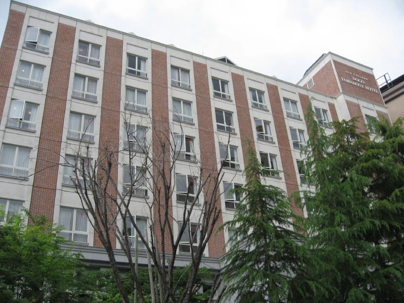 今の時間帯、男性用は御影石、女性用は檜のお風呂。露天風呂はホテルの庭の緑が良く見えて、気持ちがいいな。ここは薔薇もマシェリもないけどね。サウナにも入り、サッパリしたぞ。風呂あがりはロビーで冷えた麦茶をいただき、ほっと一息。まだ夕食には時間があるが、さっき食べたおやつもすっかり消化されたか、おなかが減ってきたぞ。部屋に戻りましょう。