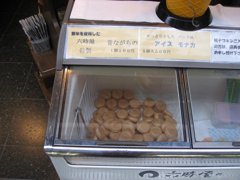 食後に昨日行ったにきたつ庵の向かいにある、水口酒造へ。ここで地酒を買えるので、いろいろと試飲をさせてもらい、道後蔵酒シリーズの原酒と焼酎をゲット。試飲とはいえ、結構飲んだな。すっきり系よりも、わりとしっかり系のお酒を選びました。にぎわうハイカラ通りをお店を見ながら歩いていると、アイスモナカ発見。六時屋というタルトの老舗で、サクサクした軽い皮とあっさりしたバニラアイスが昔ながらのモナカという感じでおいしい。さて、お土産やさんをいろいろと見ますか。愛媛の柑橘類を使った飲む酢や、美生柑という柑橘類のジュースなど重たいものばかりをゲット。帰りが車なので、少々重たくても問題なし。飛行機だとこうは行かないよね。