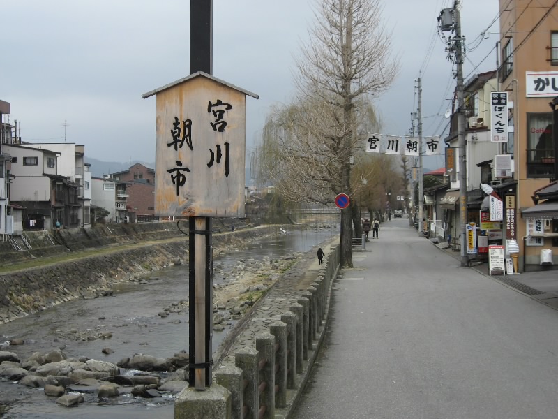 おなかも満足したし、町歩き開始。と思ったら川沿いにみたらし団子の屋台を発見。醤油の焼けるいい匂いがしているので、これは頂かないと。焼きたてをゲットし、宮川を眺めながらの幸せタイム。おいしいねえ。この川沿いでは毎日朝市が行われているのだが、さすがに今の時間帯は何もなくがらんとしていた。前回は朝市でお箸やお菓子などを買ったが、今回は行けるかな?