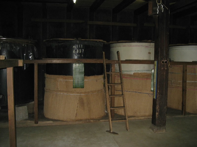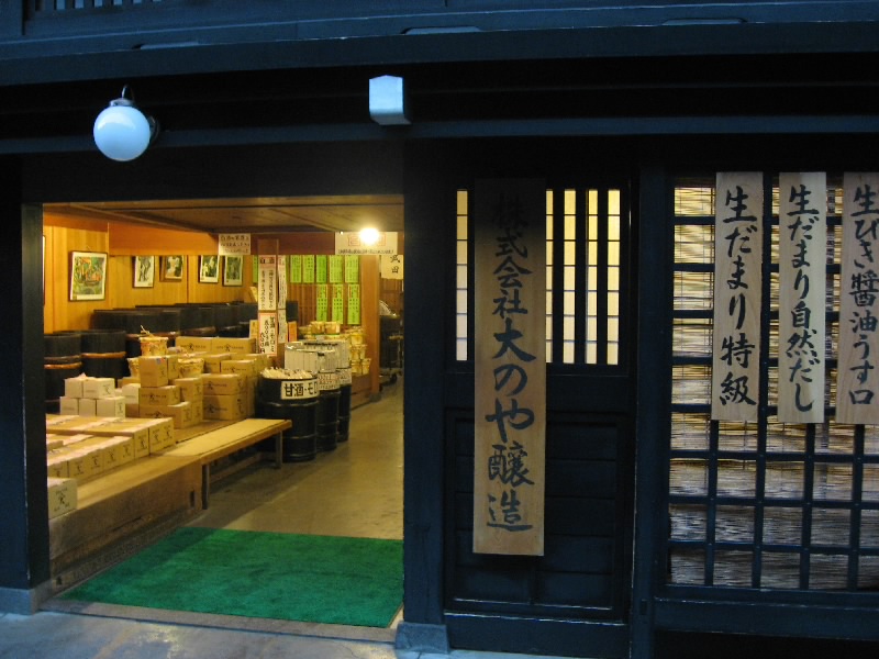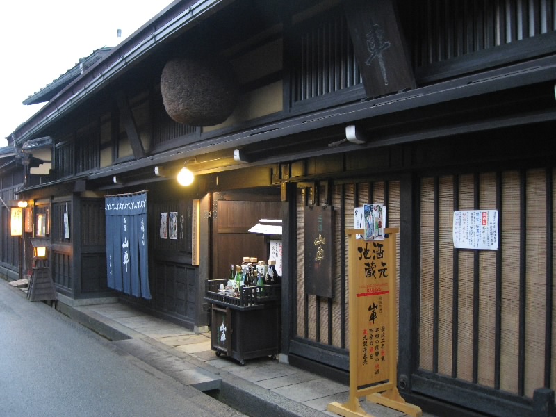 古い町並エリアにやってきた。それにしても、雪が無いなあ。もう少し雪を踏みしめながら歩くことを想像していたのだが・・・まあ、この方が歩きやすいけどね。でもちょっと靴が重装備で足元は暑いくらい。駄菓子屋などもおもしろいが、まずは酒蔵巡りかな。冬のイベントとして、この辺りにある造り酒屋が交代で酒蔵を公開し、試飲もできるようになっているのだ。英語のパンフレットもあるところを見ると、世界遺産白川郷がらみで高山にも立ち寄る外国人が増えているのかな。たしかに外国人の姿はちらほらと目に付く。さて、今週は「川尻酒造場」というところが公開中。古い町並を見ながら歩いていると、ほどなく到着だ。古い木戸を開けて中に入ると、酒屋独特の香りが漂っている。既に何人かの人が先にいて、酒造の行程についての説明を受けていた。