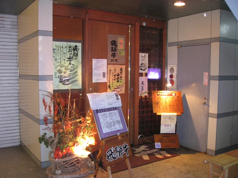 8:35東梅田発高山行き。1年半前はレンタカーで行ったが、今回は冬ということもあってバスでの往復。高山まで5時間ほどでいけるので、近いもんだね。もともとは高山から白川郷にも足を伸ばし、豪雪の中の合掌造りライトアップが見られるよう白川郷の温泉宿に夏から予約を入れていた。ところが異常な暖冬で、とにかく雪が無い。白川郷はライブカメラでも見られるのだが、屋根にはほどんど雪が無い状態。これは見たい景色ではないなあ。一時は高山行きさえ見直そうとも思ったが、この週末は日本全国あまり天気予報ではいい場所がないし、高山には行きたい居酒屋もあるので、だったら高山+行ったことの無い奥飛騨温泉にも行こうかということで、直前に予定を変更。そんなこんなでいろいろあったが、無事バスにて出発だ。途中黒丸と長良川で休憩ととったあと、郡上八幡を越えてからは結構な雪景色。でも高山に入ると予想以上に雪はなく、しかも結構温かい。奥飛騨の雪も見越して結構重装備なので、暑いくらいだな。