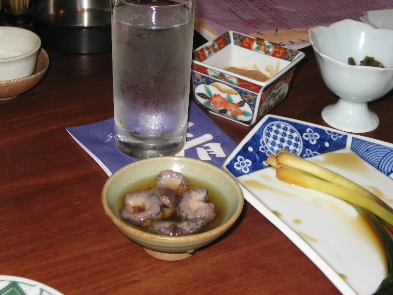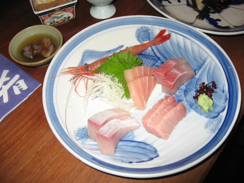 久々に食べるナマコもこりこりしていてお酒が進む。さて、では冬の日本海の幸のお刺身をいただきましょうか。ご主人曰く、ブリとヒラマサ、カジキとマグロをそれぞれ味比べてくださいと。なんとも肉厚なブリからいただきましょうか。うーん、これは脂が乗っていて最高にうまい。身が引き締まった感じもよく、歯応えが心地よい。ヒラマサもかなりおいしいが、ブリのおいしさには及ばないかな。カジキは一転、柔らかくてとろけるようだ。マグロは中トロか、おいしい脂が口に広がり、お酒にピッタリだ。子持ちの甘エビのプリプリをいただき、満足いっぱい。いつのまにかお酒がなくなったので、おすすめということで三千盛という岐阜の地酒を頂く。あーうまい。続いてはちょっと温かいものということで、カキのソテー。プリプリしていて、今が旬のカキはうまいねえ。そして白子のガーリックバター。こういう食べ方は初めてだが、とろっとした白子とバター風味がいい感じ。お薦めで頂いたざる豆腐は手作り感満載の、しっかりした豆腐でした。なんにしても酒が進む。