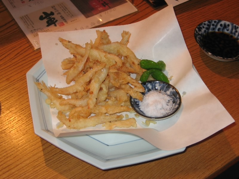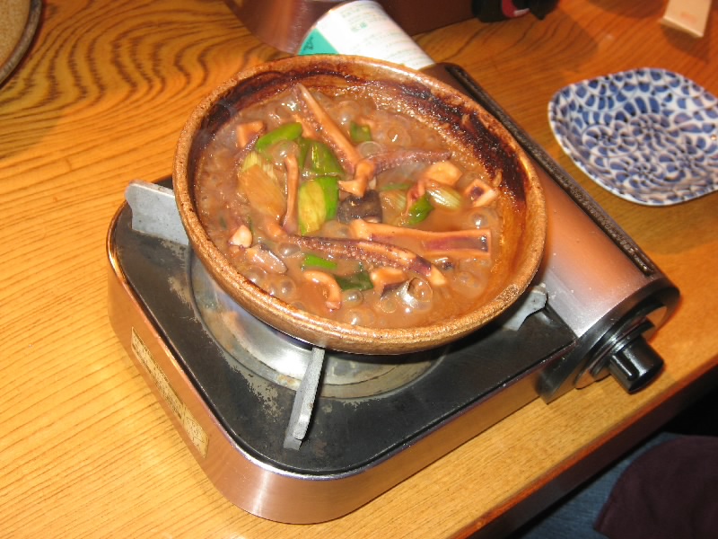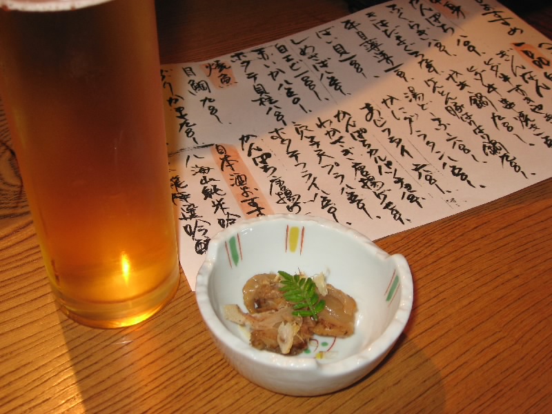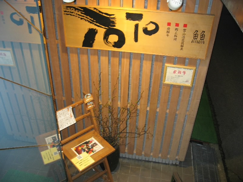 いつのまにか、お店の中はほぼ満席になっている。早めに来てラッキーだったかな。カウンターの斜め前にいた水商売風のお姉さんたちとひょんなことから話し始めたところ、なんとそのうちの一人は大阪から来ていて、しかも江坂から。隣駅ではないか。実はその人は仕事で日本中を回っていて、高山には年に何度か来ているらしく、そのたびにこの店に来ているとのこと。