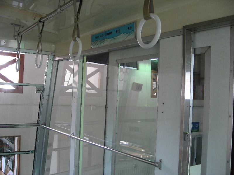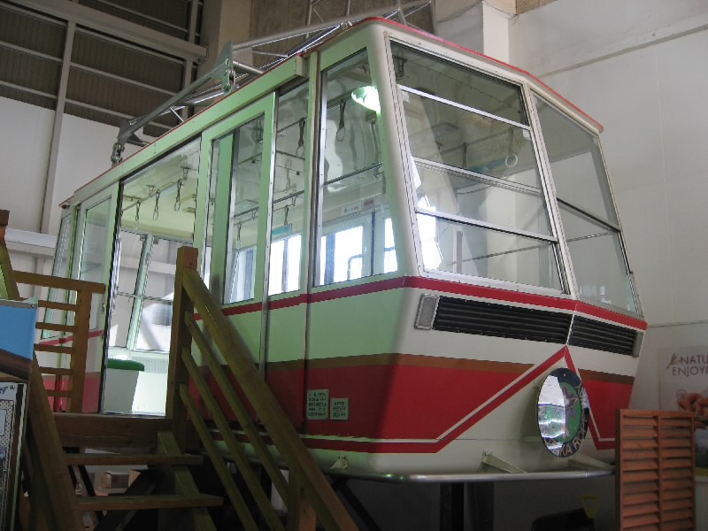 お土産やさんを見てみるが、ここで特に買うものは無いかな。バスの時間もあるし、そろそろ行きますか。ロープウェー乗り場には少し早めに行って、一番前のいい席をゲット。まだ青空だが、少し白っぽくなってきた気がする。この後は曇ってくるかもしれないね。下りの一番前は標高差が感じられて、なかなかの迫力。景色をみているうちにあっという間に終点のしらかば平駅に到着。
