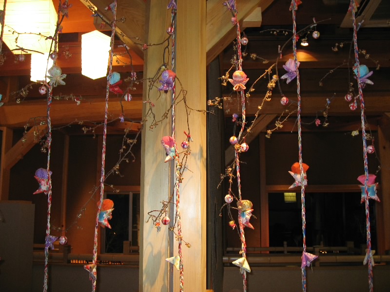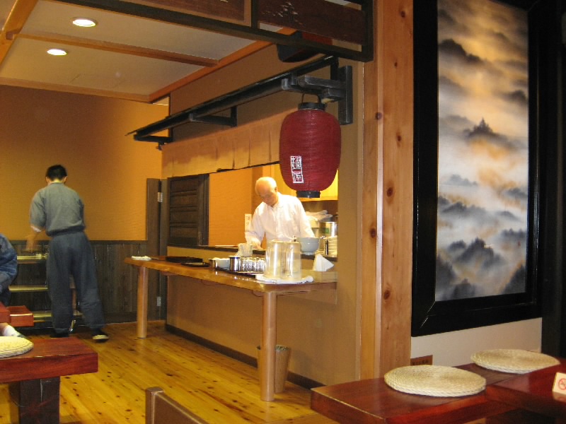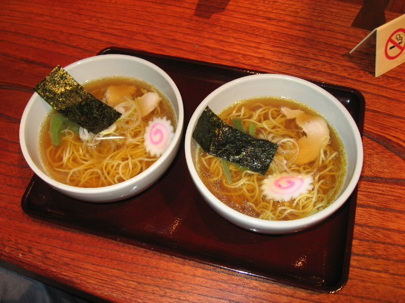 おなかいっぱいだ。しばらくお茶をいただきながら、のんびり過ごす。たくさんいたお客さんも、もうあまりいなくなった。さて、そろそろ行きますか。おなかはいっぱいだが、なんとこの宿には夜鳴きラーメンのサービスがあるのだ。そうと聞けば行かないわけには行かない。ロビーに行くと、ちょうどサービスが始まったばかりでもう何人かはラーメンを食べている。ここはせっかくなのでいただきましょう。あっさりした高山ラーメンなので、食後なのにつるっといただける。しょうゆ味のおつゆもなかなかおいしく、あっさり完食。ごちそうさまでした。