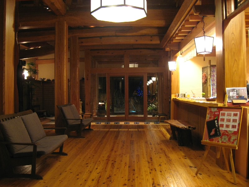 穂高、栃尾、新平湯、福地と奥飛騨の温泉郷を過ぎ、平湯温泉に到着。ここから少し歩いたところの「深山桜庵」が今日の宿。まだ新しい、きれいな宿だ。もっと雪深い中にあるような写真がホームページに載っていたが、今年は雪なさすぎ。歩きやすいけどね。広いロビーでチェックインして、好きな色の浴衣を選ぶことができる。いいね。部屋に入ると、畳の寝室とフローリングのリビング、二人には広すぎるくらいのゆったりした部屋だ。これはいいね。部屋のお風呂も露天風呂風だし、これはのんびりできそうだ。さすが、ネットの評価も高かったしね。