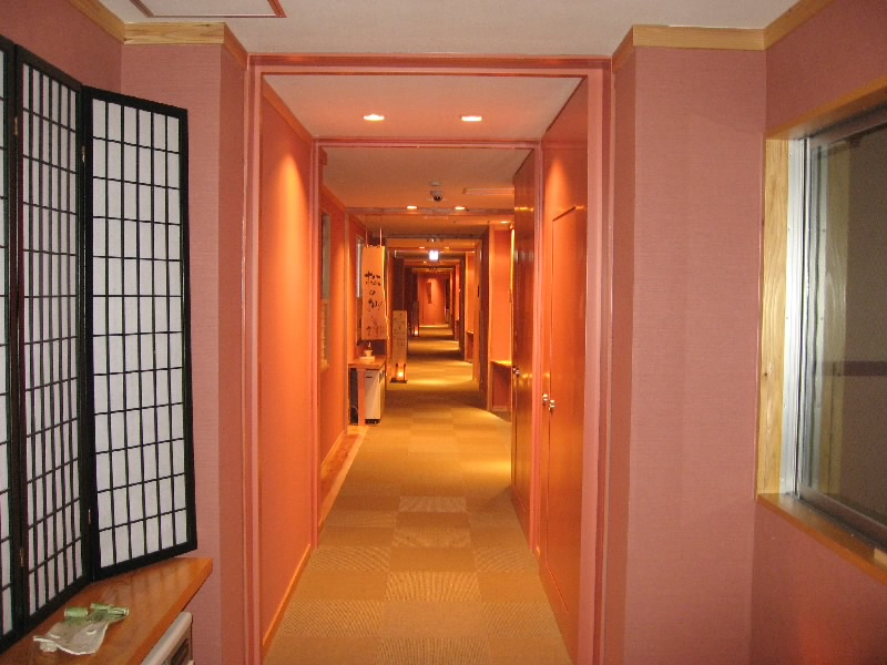 今度こそ、おなかがいっぱいだ。さすがにこのまますぐに部屋に戻って寝るわけにも行かないので、しばらくお土産を見たりしながらのんびり過ごす。ふと床を見ると、ライトが桜の形になっている。深山桜庵、こんなところもこだわっていていいね。そろそろ部屋に戻りますか。