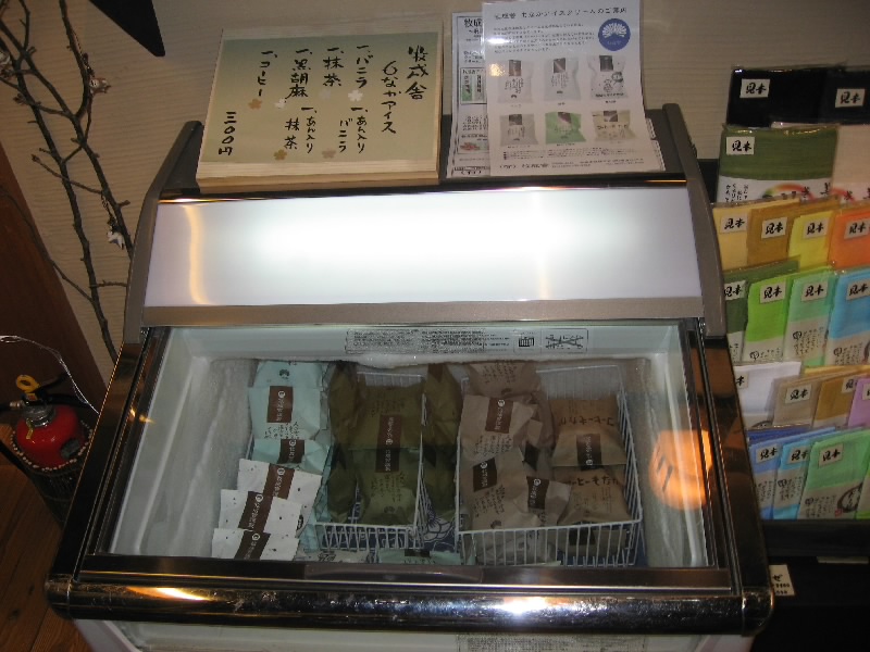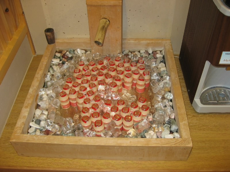 6時前に目が覚めた。ここはなんとしても朝風呂へと行かねば。まだ眠い体を引きずりながら、お風呂へと向かう。ほぼ貸切状態、檜風呂にも露天風呂にもゆっくりと入れるぞ。熱いお湯が体にじんじんと染み込むようで、実に気持ちがいい。お風呂上りの一杯は、昨日の夜は牛乳だったが朝はヤクルト。このサービス、いいねえ。すっきりサッパリしたぞ。部屋に戻る前に、アイスもなかをゲット。風呂上りのひとときをゆったり過ごす。