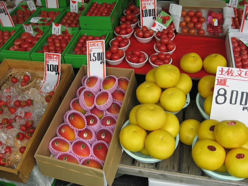 7時半起床。なかなか気持ちのいいベッドで、ゆっくり寝られたぞ。シャワーを浴びてさっぱりだ。今日は少し雲が出ているようだ。ホテルを出て、近くの大通りへいくと「日曜市」が行われていた。昨日は車が走っていたが、4車線のうち片側の2車線にたくさんのお店がでていて、地元の人と観光客とで凄い人。これが1.5キロ続くらしい。いろんな野菜や果物など、見ているだけでおもしろい。とにかくまずは朝ごはん。近くにあったお寿司のお店でミョウガやサバの寿司をいただく。他にも筍やコンニャクなど、高知の食材を使ったお寿司がいろいろあった。シャキシャキした食感のミョウガと肉厚のサバ、どちらもなかなかの美味です。高知は酢飯に柚子を使うので、ちょっと風味が違うのだがそこがまたよし。腹ごしらえも出来たので、そのままぶらぶら歩く。フルーツトマトや小夏、グリーンピースなどは今が旬かな。他にも干物や漬物、お茶や和菓子などもある。なにより包丁や鎌などの刃物がむき出しの状態で売られているのはちょっとびっくり。都会ではちょっとありえないよね。小一時間ほどかけ、そろそろ終わりかな、ちょうど終点のところにはひろめ市場があり、中に入ってみる。常設の市場なので、ここでは鰹のタタキなどの生ものも売られている。奥には食堂エリアがあり、ここでお昼ごはんに鰹のタタキ丼でも食べようかと思ったが、ものすごい人ごみ、長蛇の列。さすがにここではちょっと食べる気がしないなあ。