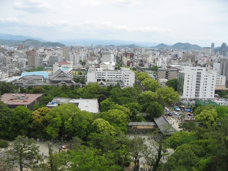 高知城に到着。門の手前にあったのは、初代高知藩主・山内一豊の像。門を入って少し階段を上がると山内一豊の妻(千代)像。功名が辻だよね(見てないけど)。階段の手前には自由民権運動の板垣退助の像、高知にゆかりの歴史上の人物は多い。階段を上りきったところには天守閣があり、中に入ってみましょう。城内には当時の暮らしを現したフィギュアがあったり、高知に関する歴史についての展示があったりとなかなか興味深い。天守閣に登ると高知市内が一望できる。この前登った姫路城よりは小規模だが、最上階から見る景色はなかなかのもの。昔はもっと城下町が広がっていたんだね。幕末に関する展示もあって、坂本竜馬や中岡慎太郎など、30歳前後の若者達が近代日本の夜明けに尽力したことがよく分かる。来年の大河ドラマは坂本龍馬らしいので、ぜひ見てみよう。
