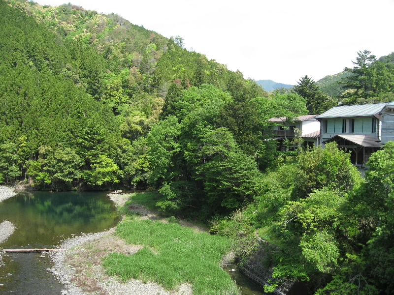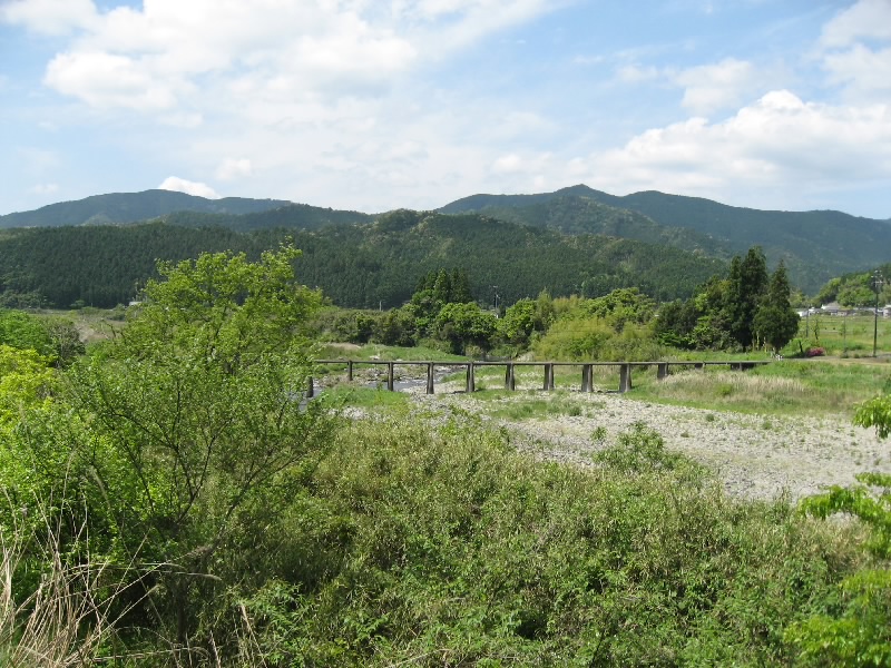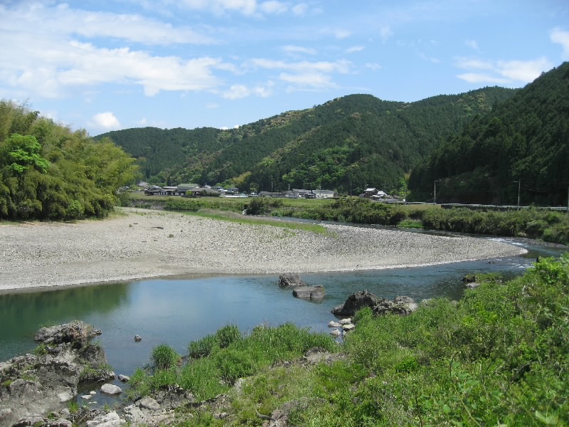 さて、出発だ。ここからは高知の田舎をひたすら走る。途中、何度も見たのが立派な鯉のぼり。家庭のもののようだが、本格的で立派だ。一緒に男の子の名前が書かれた旗が力強くはためいている。いいねえ、これだと子供にとってもいいだろうねえ。都会のマンションからのぞく鯉のぼりもまたよしだが、やっぱりこうじゃないとね。土佐久礼を過ぎてから、すごい山越えになった。このあたりからは、遠くに海を見ることができる。よく見ると、山間にクレーンが。今は須崎までの、高速道路の工事だね。これが四万十まで伸びてくれると随分と来やすくなるのだが・・・でも人が多くなりすぎるのも、どうなんだろうという気もするし、ここが難しいところ。