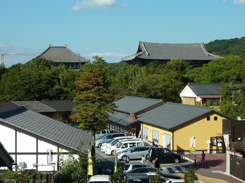 せっかくなので春日大社にお参りし、お昼ごはんへ。やっぱり奈良といえば柿の葉寿司ということで、大仏殿の近くの「ゐざさ」へ。1階ではお土産用のお寿司がいろいろと売ってるぞ。2階のレストランへ行き、奥の席につくと目の前に大仏殿と東大寺南大門が見え、なかなかの迫力。さて、お寿司の盛り合わせをいただきましょう。桜鯛の桜寿司・山菜巻・柿の葉寿司にゐざさ寿司。どれもおいしいなあ。お米もおいしいよね。とても満足しました。食後は目の前にある「ふれあい回廊 道しるべ風しるべ」へ。ここでお土産などを見る。大和の野菜売場があったので、青唐辛子をゲット。あと酒屋さんで、試飲しながら「大倉」という純米吟醸をゲット。香芝のお酒なんだね。いろいろあって、楽しいです。 |
