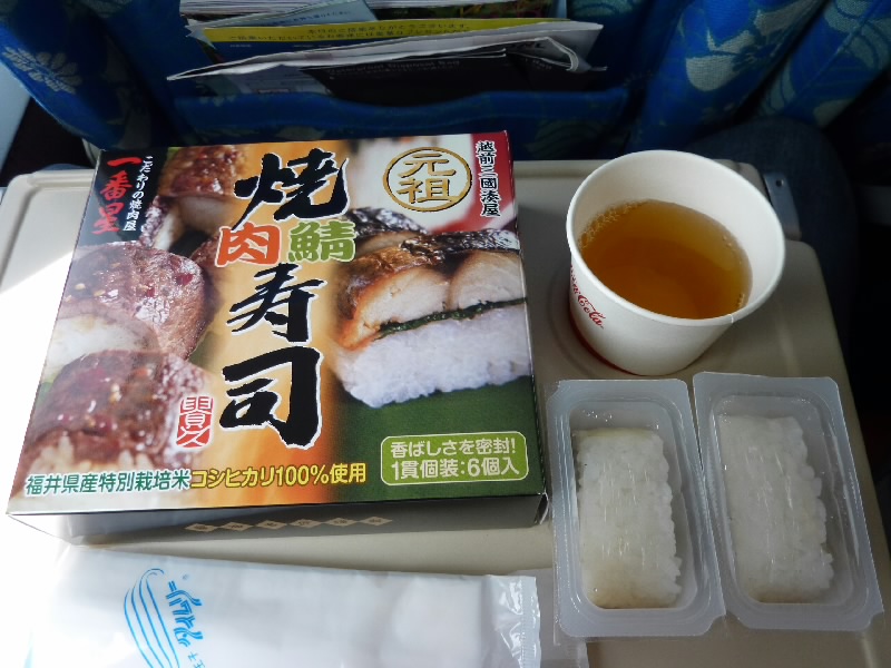 しばらくは外の景色を見ていたが、いつの間にやら眠りに落ちていた。ドリンクサービスが始まったころ、目が覚めた。冷たいお茶をいただき、すっきりしたところでさっき買った空弁を食べましょう。まずは焼き鯖&肉寿司。これは・・・おいしいが異常に食べにくい。とにかくめんどくさい&手がべたべたになる&ごみがエコでないの三重苦。個包装の弊害、二度と買うまい。続いては柿の葉寿司。これは定番、安心していただける。よかった。おなかも満足したところでコーヒーをいただき、機内誌や新聞を見ながらゆったりすごす。しばらくして、飛行機は次第に高度を下げてきた。雲が切れると美瑛あたりだろうか、丘に広がる畑が見えてきた。雨なのかなあ。