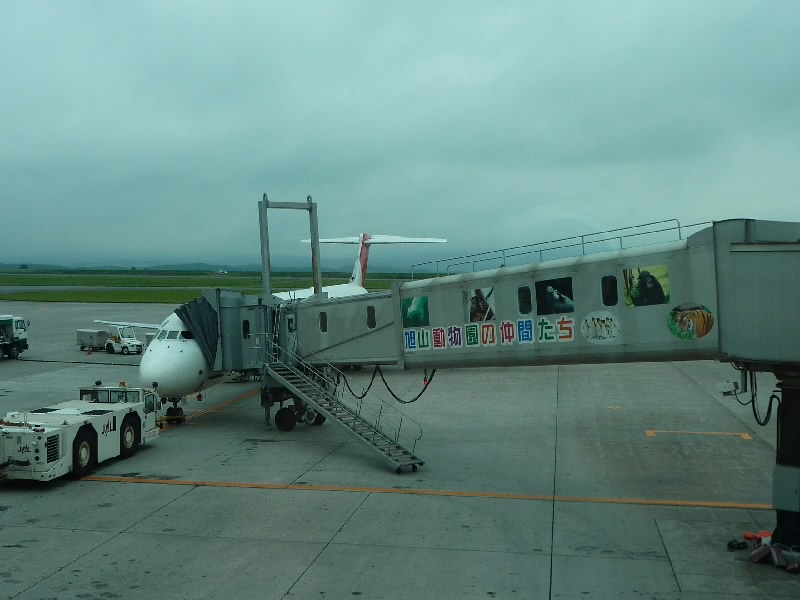 定刻より少し早く、15時過ぎに旭川空港に到着した。荷物を受け取り、外にでるとすぐに空港バスが来た。富良野から空港経由で旭川駅へ行くバスのようで、既に何人か乗っていた。バスは空港の周りをぐるっと回って市内へと向かう。20分ほど走ったところで、旭川駅前に到着(@\520)。少し雨が降っているが、傘無しでも大丈夫かな。まずはホテルへと行きましょう。今日のホテルはルートイン旭川(\9800)。12階最上階の部屋で、それほど広くは無いがベッドが硬めで気持ちがいい。少し休憩して、町歩きへと行きますか。