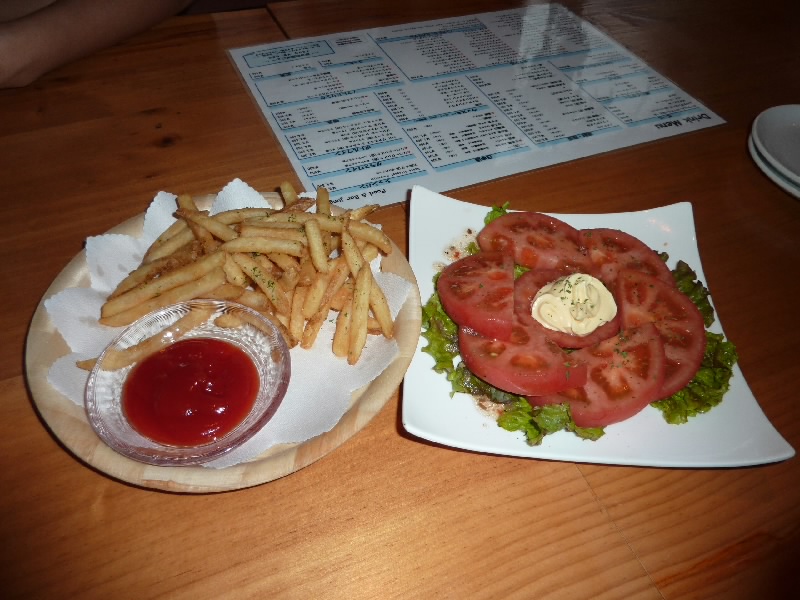 少し雨が強くなってきたかな。このこってりラーメン風味の残る中、ギネスビールでも飲みたいな。バールのようなお店が無いかと探したが、いまひとつピンとくる店が無い。旭川駅まで来たが、よさげな店がないなあ。駅でついでにどら焼きを買い(\126)、近くのセブンイレブンで情報収集。旭川ウォーカーという雑誌があったので、いくつかバールをチェック。メインストリートよりも一本西側、ホテルに近い通りに結構あるようだ。早速行きましょう。目的のお店についてみると、地下にあって閉ざされた扉からは中が見えず、メニューも出ていないという超入りづらい雰囲気。それよりもたまたま見かけたFood Bar jungoというお店にはギネスがあって、つまみも手ごろでいい感じなので入りましょう。まだ開店間もないようで、最初の客だ。窓際の席に着き、早速ギネスを注文。久しぶりの黒い泡を味わう。うーんうまい、やっぱりこってりラーメンのあとは日本酒でもワインでもなくギネスだね。少しつまみもほしいので、フライドポテトと冷やしトマトをいただく。ポテトは皮付きでなかなかうまいぞ。ギネスにも合うしね。冷やしトマトはうまいのだが、ちょっとドレッシングかかりすぎ。突き出しのハム&ポテトサラダもあるし、ギネスをお代わりして北海道最初の夜をゆったりすごす。19時も過ぎたし、そろそろ終わろうかなあと思っていたら、別のお客さんが隣のテーブルに来た。タバコ2箱もって吸う気満々。やばい、とっとと出ましょう。たまたま通りすがりに入ったが、のんびりできてなかなかいいお店でした(\5300)。