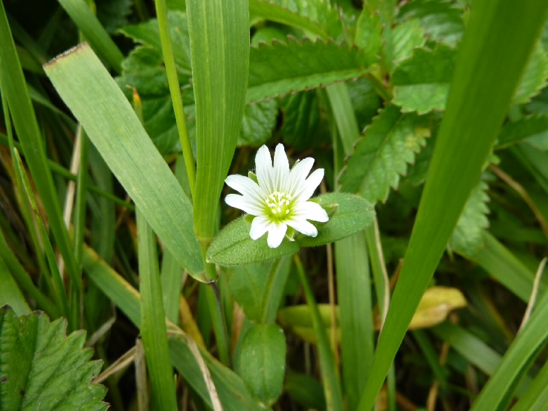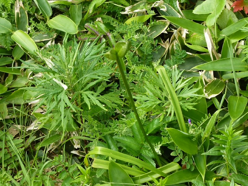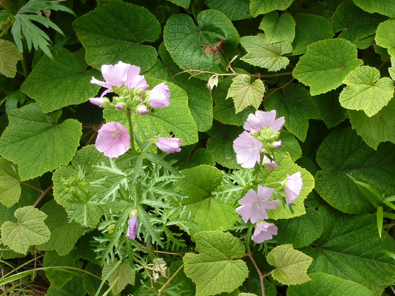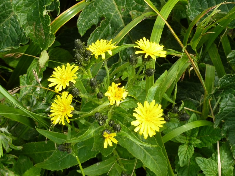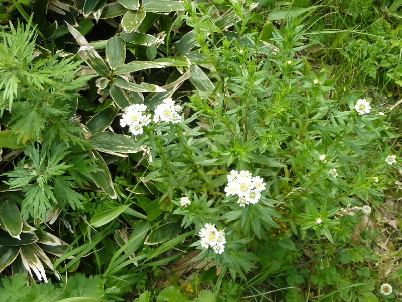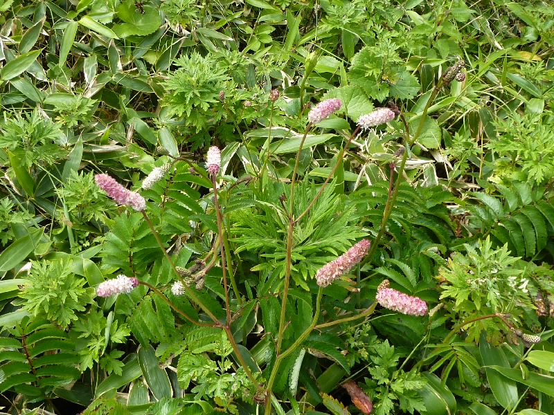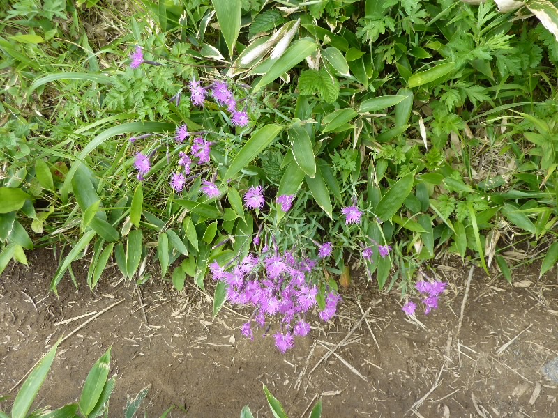 ではいよいよ4時間コースのスタート。とはいえ最後の約1時間の区間は今の時期特に見所が無いらしいので、実質3時間コースになる。でも花を見ながらじっくり歩くともっとかかるんだろうな。歩き始めてすぐに、12時のサイレンが鳴り響いた。しばらくは車道沿いを歩く。エゾニュウが一面咲いているところがあったり、草が風のためか曲がって生えていたりしている。途中に小学校があったが、どうみても廃校しているようだ。昔はこのあたりにももっと人が住んでいたのだろうか。