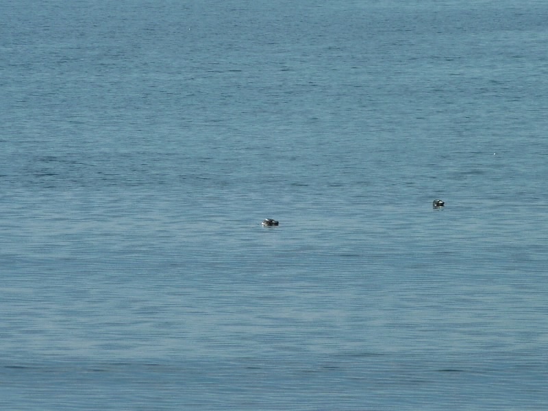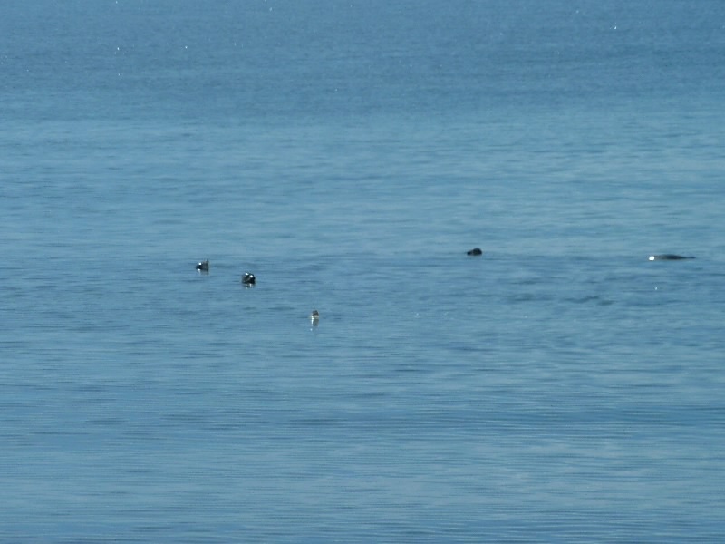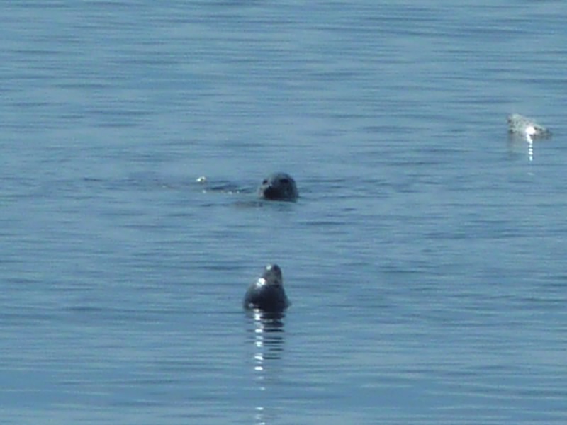 海を見ると、沖合い100メートルくらいだろうか、なにか動いている気配を感じる。海鳥がいることはわかるのだが、それだけではない動き。道を下りきり、浜辺に近づくと、それがあざらしであることがわかった。これぞ野性のあざらし、初めて見たぞ。海の上に顔を出したり潜ったり、全部で5、6匹はいそうだな。おそらく今は食事中なんだろうな。なんとかデジカメのズームで近づくと、愛嬌のある様子を捉えることができた。