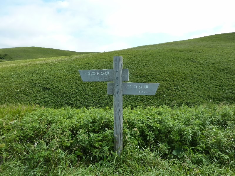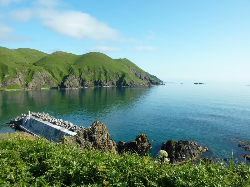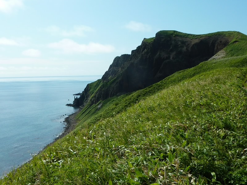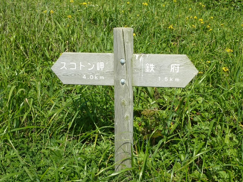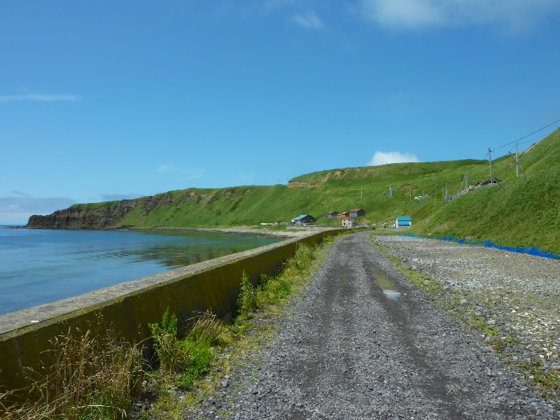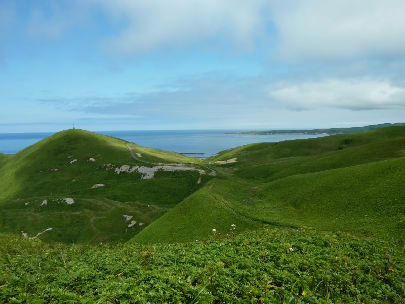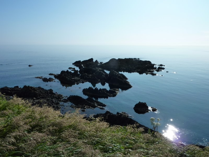 そのまま海岸沿いを歩き、アワビコタンというところに到着。ここからは上り坂だ。それにしてもいい天気、昨日のこともあるので防寒グッズと雨グッズはしっかり持っているのだが、もはやこれは重いだけ。照りつける日差しの中、なんとか平坦なところまで登ってきたぞ。海を振り返ると、いやあ絶景。自分の足で歩いてきたわけで、やっぱり気持ちがいいなあ。