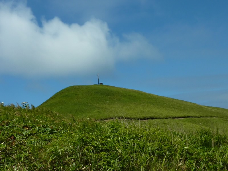 さすがに汗だくになってきた。太陽の日差しが雲で隠れたときは涼しくて気持ちいいが、直接日差しを受けると上り坂ということもあって汗がかなり出てくる。そんな中を一歩ずつ少しずつ進み、ようやくこのルートの中間地点、海抜176メートルのゴロタ岬に到着だ。