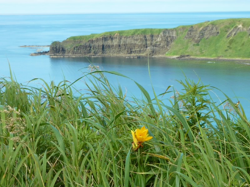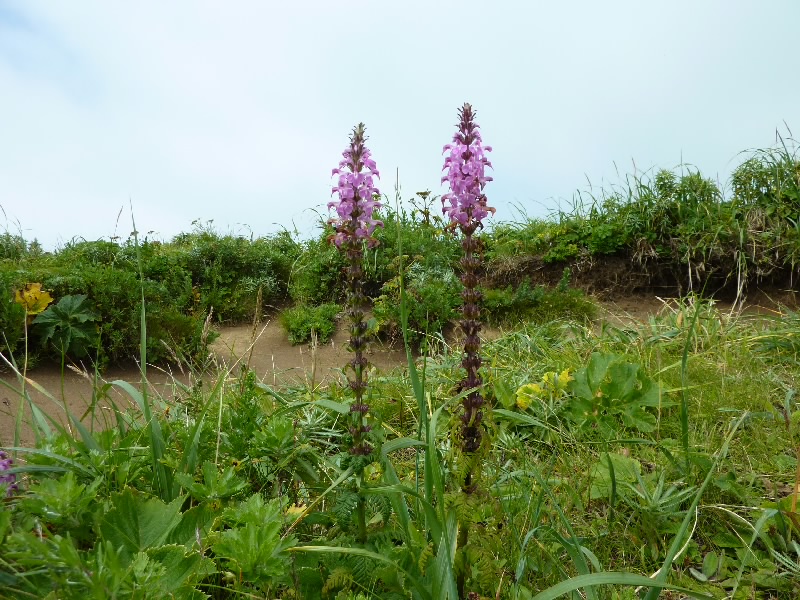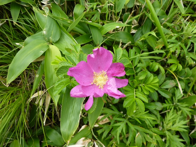 階段を降り切り、平坦な道へ。うーん、平らな道ってありがたい。海岸沿いを歩くと、また違った種類の花がいろいろと咲いている。季節が違うと、また違う花が咲いているんだろうな。それにしても、今の時期に咲いているはずのレブンウスユキソウにはなかなか会えないなあ。礼文林道コースには群生地があるらしいが・・・それほど高山植物は環境にデリケートなのかな。