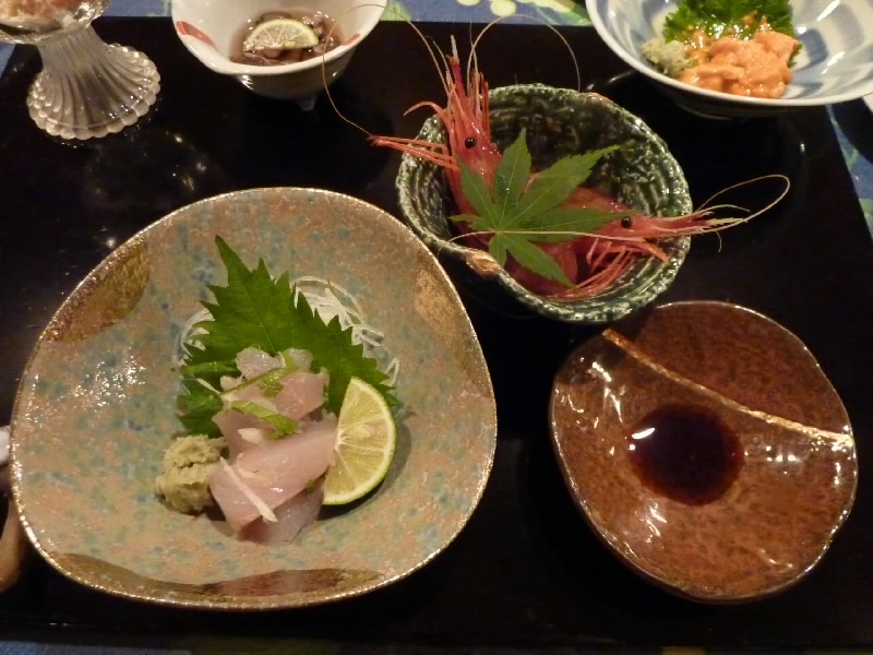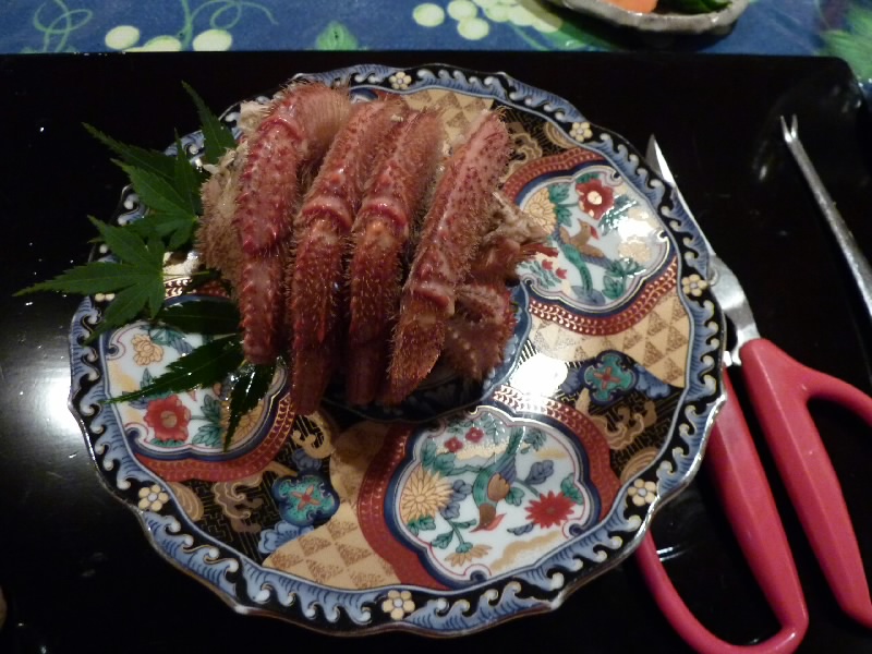 まずはお刺身。これが初体験の、ホッケの刺身。昨日の煮付けに続いてのホッケバリエーションだ。淡白でやわらかい身で、ふんわりとおいしさが伝わってくるようだ。なかなかいいですね。あとメニューにはなかったが、サービスということでシマエビが2匹出てきた。新鮮なのでちょっと頭がはずしづらかったが、ミソまでしっかり頂きました。シャンパンにもよく合うしね。続いてはうにの茶碗蒸し。火が通った新鮮なウニは少しねっとり感がでて、これが卵とベストマッチ。でもコレステロールはかなりのもの?まあたまに食べるのはいいよね、おいしいしね。そしてでました、毛ガニ。一人分はハーフサイズだが、それで十分。はさみとカニ用スプーンを駆使して、とことんまで身を取り出す。少し角度を変えると身がとりやすくなったりするので、確かにこれは無言になるね。ほじくりながら食べながら、そしてシャンパンを飲みながら、毛カニとの戦いは完全勝利にて終了。まだまだ食事は続き、次はメニューにはないじゃがバター。北あかりだ。ほくほくとねっとりが合わさったような食感で、自然の味が濃くておいしい。いいねえ。バターがついてきたが、なくても十分コクを感じることが出きる。そろそろおなかはいっぱいだが、最後に柳の舞というメバルの仲間の魚の煮つけと、ご飯セット。ていうかこれだけで煮魚定食ではないか。最後にこの量はちょっと多いが、これもきれいに完食。思いっきり満腹、ごちそうさまでした。ホテルの人が合間に話しかけてくれたり、エーデルワイスの歌を聞かせてくれたり、楽しいひとときでした。いつの間にやら他のお客さんはいなくなっている。シャンパンボトルを空にして、大満足です。