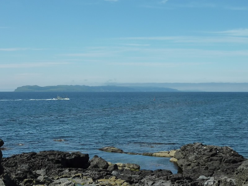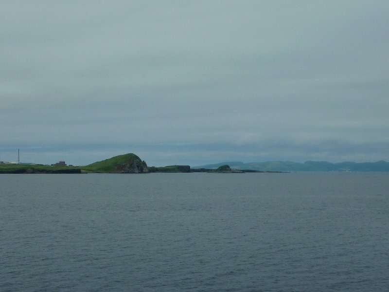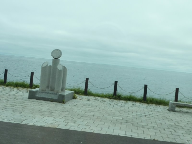 9時前、ホテルをチェックアウト。こんな離島にあるとは思えない、いい雰囲気のホテルでした。送迎バスが出るとき、ホテルの人が見送ってくれた。さて、バスは港へと向かう。途中の海岸には、昆布漁の人たちが一面にコンブを干している。それにしてもたくさんあるなあ。これだけ干して、夜までには片付けて、また明日干してと大変な作業。これがおいしいコンブになればいいね。しばらく行くと、1948年にここで観測された金環食の記念碑を見ることができた。港に着いたぞ。空を見ると、結構青空が広がってきているようだ。利尻への船は9:55だが、どうする?一本遅らせると午後便になるが、今からなら初日に行った桃岩展望台へ行くことができる。でも利尻もゆっくり見たいし、明日は札幌へ飛ぶ日だし・・・そうだ、靴も普通だしまたジーパン汚れるし、やっぱり無理はよくないな。昨日ハイキングは堪能したので、やっぱり予定通り利尻へと行きましょう。