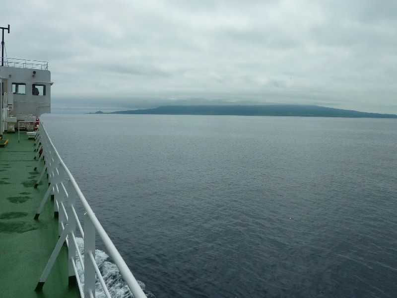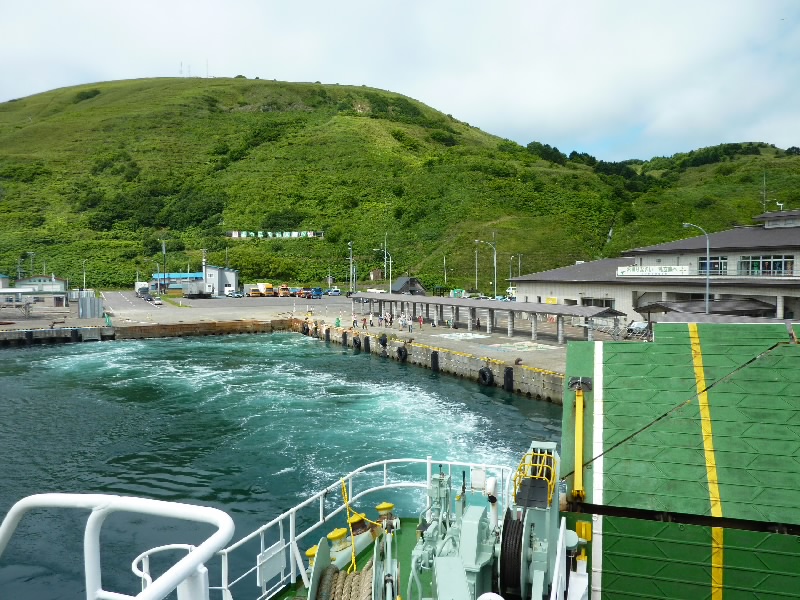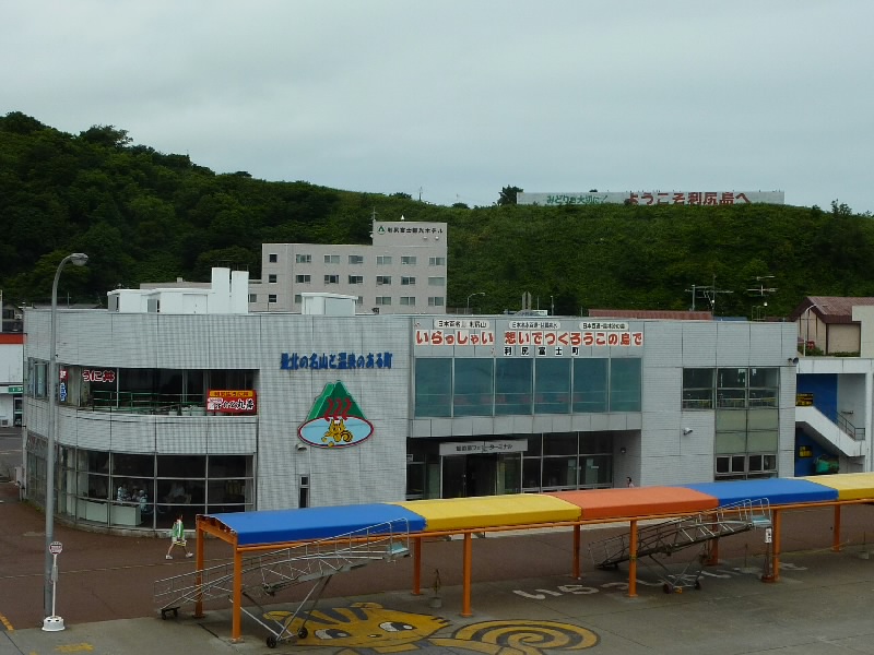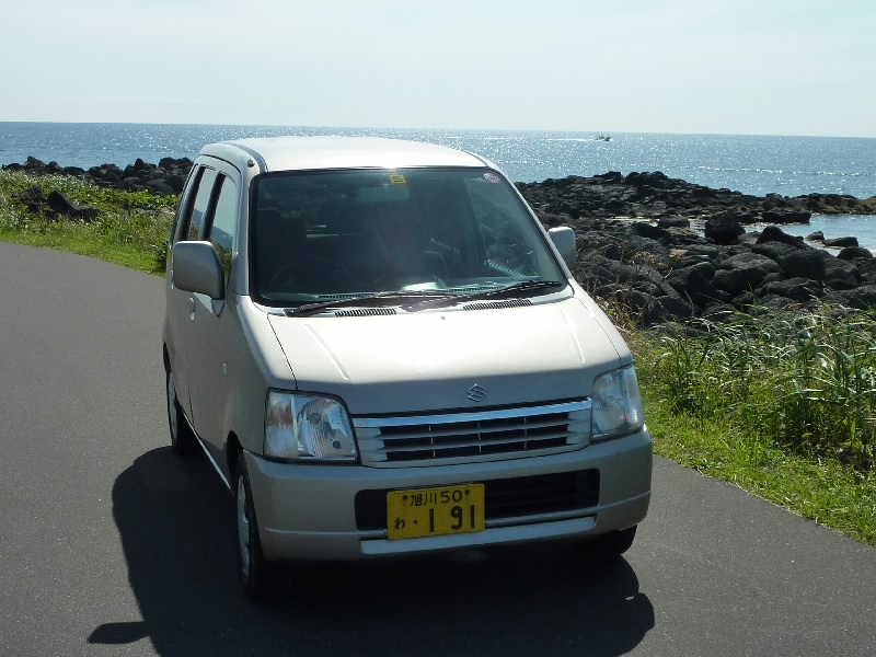 まもなく乗船が始まった。外人さんもいるのだが、泊まっていたところ(おそらく桃岩荘YH)の人たちが妙にハイテンションな見送りをしてくれている。こういうのもおもしろいな。9:55、船は利尻島に向けて出発だ。50分ほどの船の旅だが、まだ利尻富士はきれいには見えない。朝よりは晴れてきているとは思うのだが・・・10:35、あっという間に利尻島の鴛泊に到着だ。フェリーターミナルの裏にはお土産やさんなどがならんでおり、まずはその中にあるまごころレンタカーへ。到着したばかりの人たちで結構にぎわっていた。予約していた車を5時間コースでゲット。初めての軽自動車だ。利尻島は丸い島で、ぐるっと一周に約2時間、あとは途中の観光ポイントやごはんなど、16時までに返せばいいということだ。初めての軽でちょっと勝手が違うところもあるが、早速出発だ。