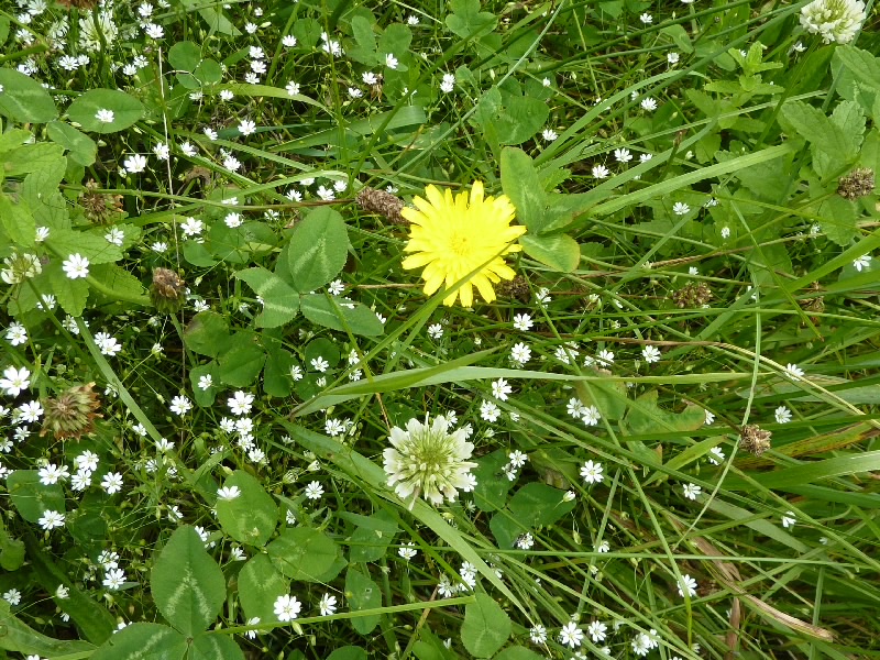 15時を回った。11時の位置にある、富士野園地へと行きましょう。一面緑の草原の中に、いろんな花が咲いているのが見える。もう少し時期が早ければ、エゾカンゾウが一面に咲いているらしい。海からの風を受けながら散策するのが気持ちいいね。さあて、そろそろ16時が近くなってきた。時間切れかな。今日は結局利尻富士の雲は晴れなかったなあ・・・港に戻り、車を返す。