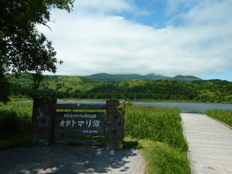 鴛泊フェリーターミナルがちょうど時計の12時の位置とすると、まずは1時の位置にある姫沼へ。利尻島の名所の写真といえば、ここが使われているところが多い。駐車場から少し入ったところに、一周1キロほどの沼があった。なかなかきれいな景色だが、残念なのは利尻富士。半分より上が雲に隠れていて見えない。うーん、昨日のようにだんだん晴れてくるかもしれないので、とりあえず今はこのくらいで。雲が晴れたらまた来たらいいね。