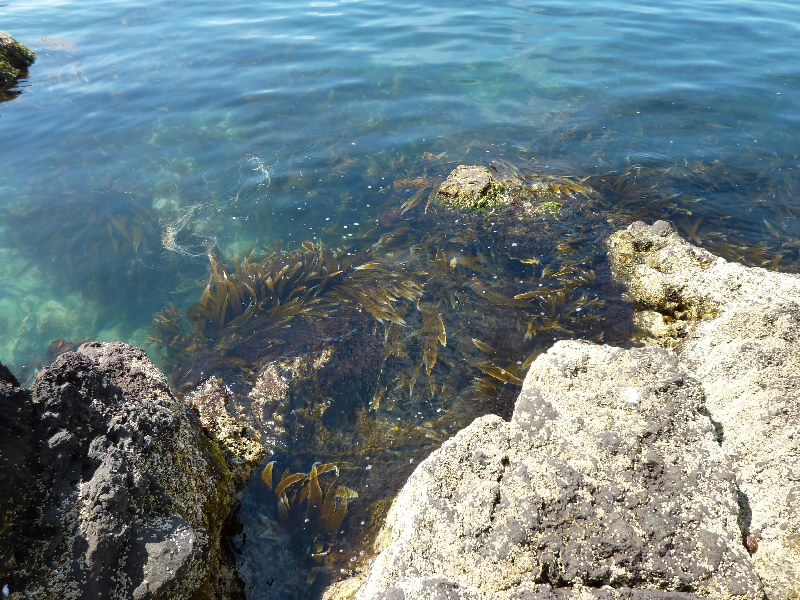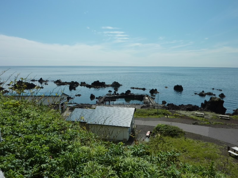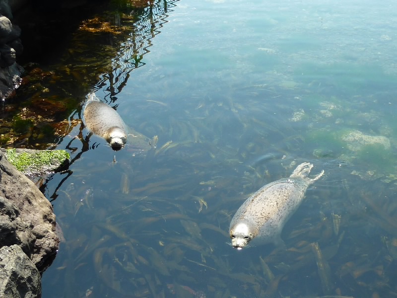 続いては、6時の位置にある仙法志御崎公園へ。岩のある海岸には仕切られたところがあり、そこには2頭のゴマフアザラシがいた。気持ち良さそうに泳いでいるが、この2頭はここで飼われているのかな?岩場を良く見ると、たくさんのコンブが波にゆらゆらしていた。これがおいしいコンブになるのかな。利尻富士はもう一息かな・・・