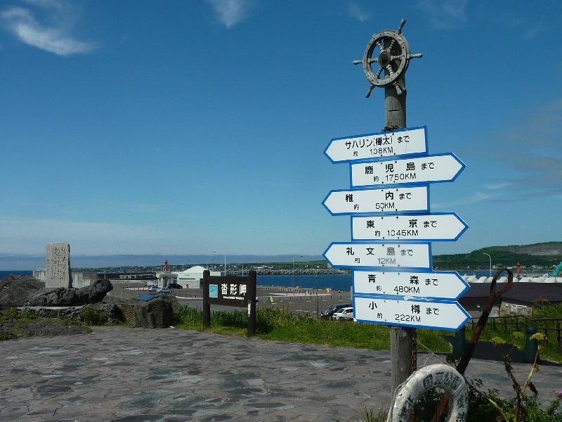 9時の位置にあるのが沓掛岬公園。ここはキャンプ場にもなっているらしく、テントがいくつかあった。海辺にある看板には、利尻と礼文に育つ植物がかなり異なっていることが書いてあった。わずか12キロしか離れていないのに、不思議だなあ。すぐそこに礼文島は見えているんだけどね。