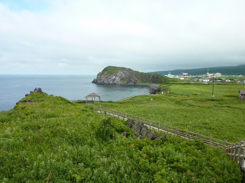 姫沼から少し降りたところにあるのが姫沼展望台。鴛泊港やペシ岬、その向こうに礼文島がよく見える。少し視線を変えると、サロベツあたりだろうか、北海道本島がうっすらと見える。もう少し天気がよくなればもっとはっきり見えるのかな。静かで気持ちのいいところだね。