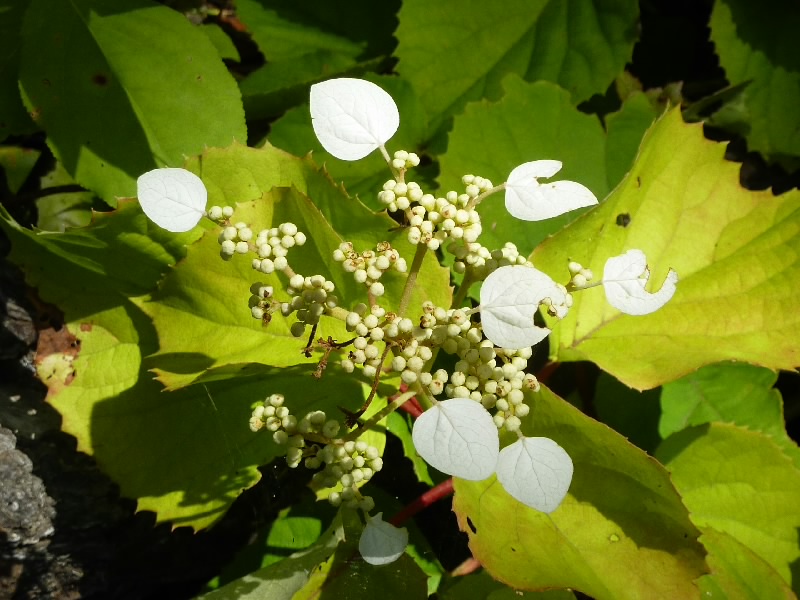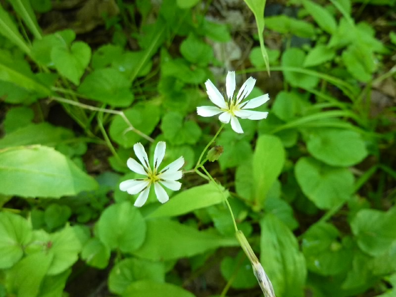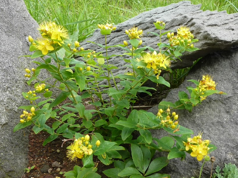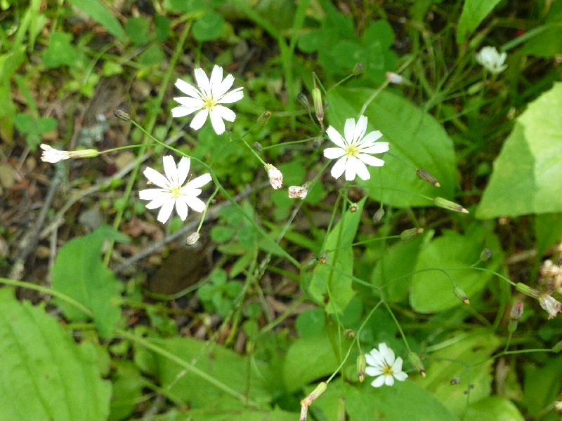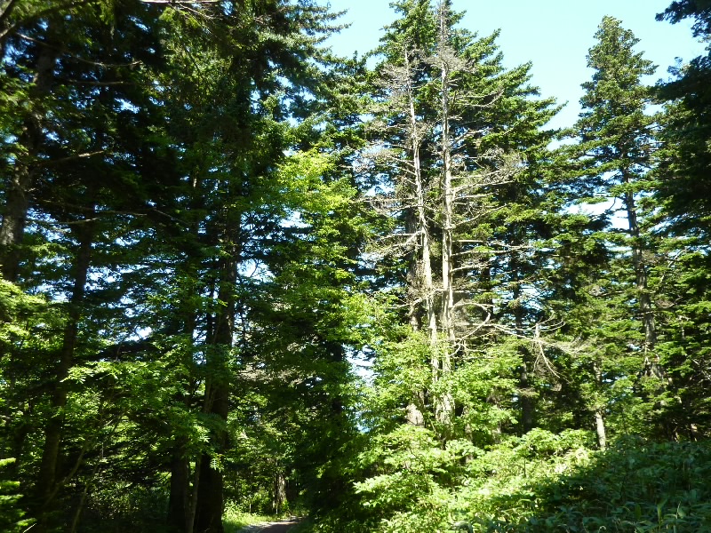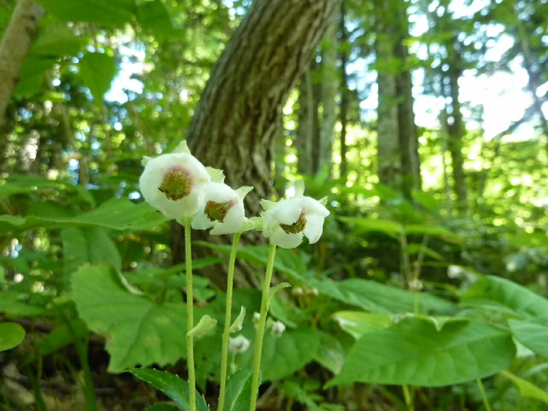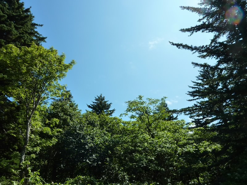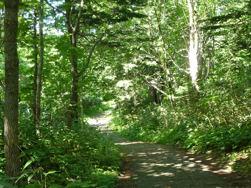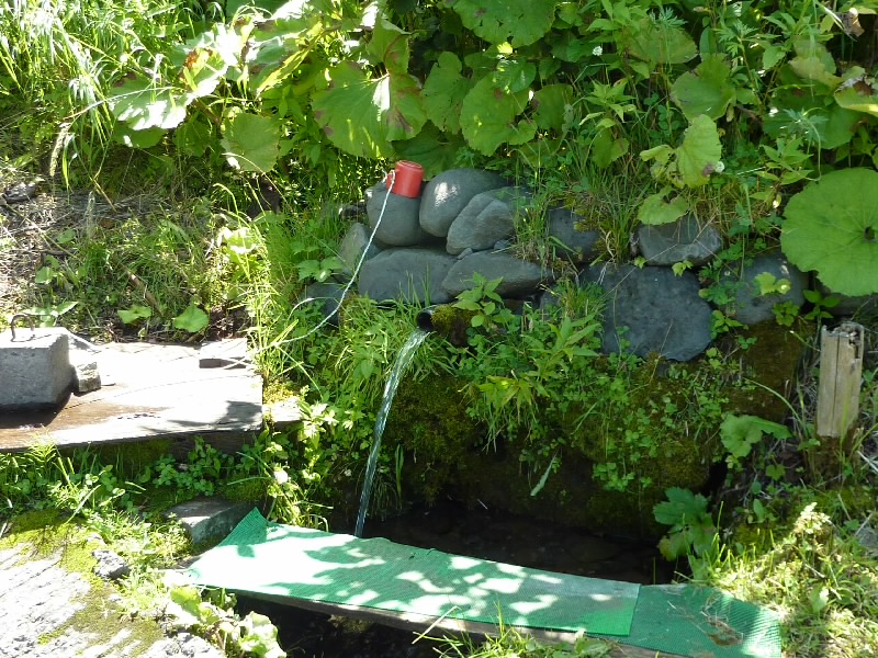 まずは昨日行けなかった、甘露泉水へ行きましょう。少し山道を登っていくとキャンプ場があり、その駐車場に車を止める。ここから泉までは560メートル、さわやかな朝の空気の中、山道を登る。ここにもいろんな花があり、写真を撮りながらのんびり進む。そろそろ疲れてきたころ、泉に到着。岩の間から水があふれ出ているぞ。ペットボトルに汲んで飲んでみると、冷たくて実にうまい。体にすーっと入ってくるようだ。このさわやかな水を、持参したペットボトル6本にいただく。まさに利尻富士の恵、こんなおいしい水が普通に飲めるのがうらやましいな。