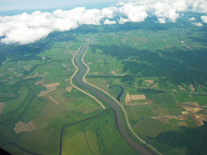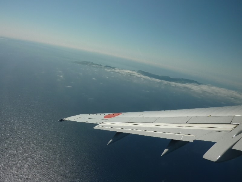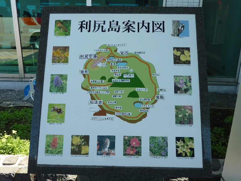 そろそろ搭乗の時間。飛行機にのりこむときに、再度利尻富士を拝む。もう山頂は見れないのかなあ。飛行機に乗り込み、程なく離陸。飛行機は北東に向けて離陸した。進行方向に向いて左側に座っていたのだが、ちょうど礼文島の全体が見渡せるぞ。その礼文島上空をぐるっと旋回し、進路を南にとったとき、眼下に利尻島が見えた。真ん中にある利尻富士に雲がかかっているが、上からだと山頂も見ることができた。こっち側の席に座ってよかった、ラッキーだ。最後に利尻礼文の全体を目に焼きつけ、花の浮島の旅は終了。風や雨、そして予想外の晴天とめまぐるしく変わる天候の中、たくさんの花を楽しみウニなどの魚介を味わい、とても楽しい旅でした。なかなか簡単に来れる場所ではないけれど、またいつか来て見たいものです。今度は桃岩をちゃんと見られればいいね。あとレブンアツモリソウ、レブンウスユキソウも。ならば6月中下旬かな。