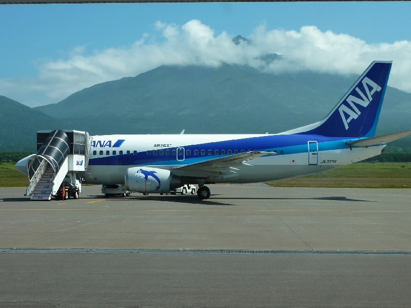 さて、港を抜けて一路空港へ。富士展望台を超え、少し山側に上がったところに利尻空港はあった。今は札幌との一日一往復だけなので、こじんまりした空港だ。空港の駐車場に車を止め、指示された通りドアポケットに入れて完了。このあたりの車は同じようなレンタカーが多いんだろうな。ちょうどまごころレンタカーの人が来ていたので、お礼を言って無事に返却完了。さて、さっそくチェックインだ。ここではお土産が買えるわけでも昼ごはんが食べられるわけでもないので、出発ロビーでのんびり過ごす。ロビーで待っているのは、われわれよりも年配の方がずっと多い。やっぱり利尻礼文は若者集団は来ないのかな。北海道もいろいろ行って、最後にここ、なんだろうね。ここからも利尻富士が見えるのだが、さっきよりも雲が少なくなってきたようだ。もう少しで山頂が見えそうだが・・・と思っていたら、ほんの一瞬だが山頂が見えた。やった、最後の最後でとうとう姿を現してくれたぞ。すぐに雲にまた隠れてしまったが、少しでも見られてよかったな。