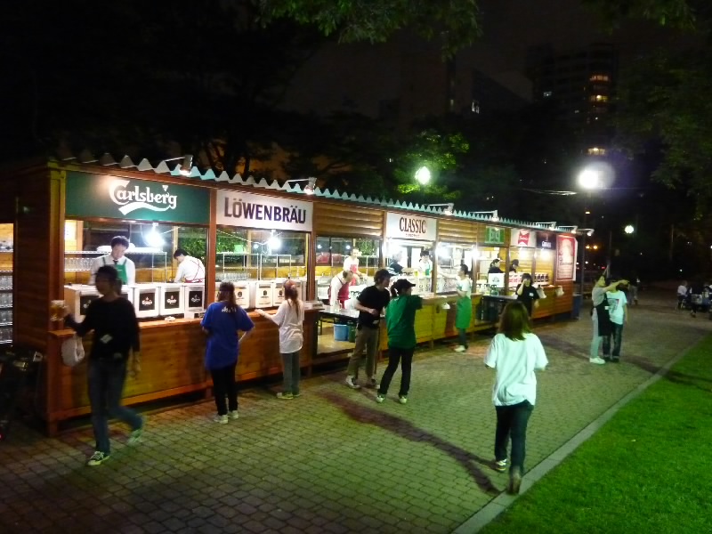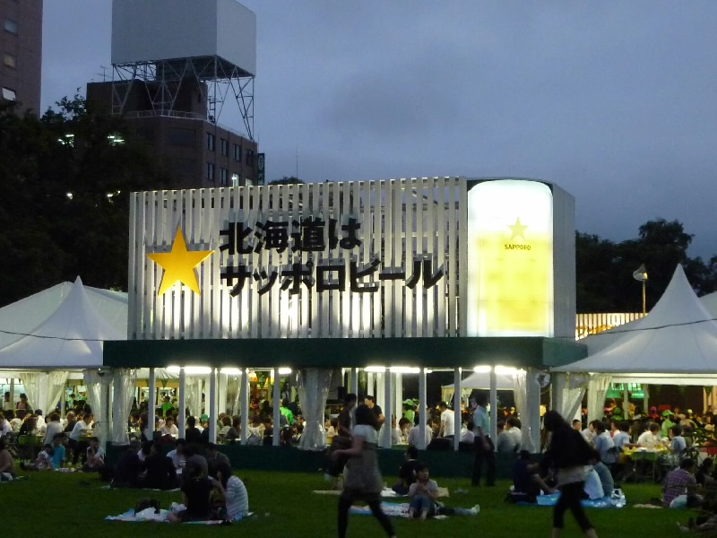 札幌駅から少し歩き、大通りにあるホテル・リッチモンドにチェックイン。リッチモンドは帯広や高知で泊まってポイント高かったが、ちょっとここはクラシカルかなあ。あと禁煙室なのになぜかタバコくさかったので、部屋を変えてもらいました。まあちゃんと対応してくれたから、よしとするか。さて、大通り公園の夏祭り会場へと行きましょう。去年はちょうど秋祭りをやっていた時期でいろんな屋台がでていてなかなか楽しかったが、今年はどうかな。6丁目会場へと着くと、そこはサントリープレミアムモルツのビアガーデン。平日の夜ということもあり、会社帰りらしき人たちで大賑わい。うーん、2人でゆっくり楽しむ雰囲気ではないなあ。でもこのあとも似たような感じで、7丁目はアサヒスーパードライ、8丁目はキリン一番絞り、9丁目はサッポロクラシックと4大ビール会社のビアガーデン。どうしようかと思っていたら、次の10丁目会場はなんだか席がゆったりしてそうだ。