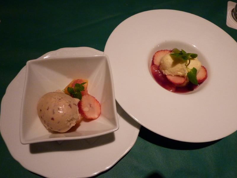 ふう、ほっと一息。たくさんの人が、雨宿りならぬ雪宿りをしている。明日もあるし、今日はここまでかな。地下街はススキノまで伸びているので、お店を見ながらぶらぶら歩く。途中のチーズ屋さんで北海道産のチーズを買ったぞ。ススキノでは、ちょうどヨーカドーの地下食品売り場へとそのまま入れるので朝ごはんをゲットしましょう。パン屋さんで見たのは前にケンミンショーでみたことのあるちくわぱん。これは是非食べてみよう。あとは士幌ポテトのパン、富良野トマトのジュースと十勝の牛乳、北海道尽くしだな。ホテルに戻るためには少しだけ外にでるが、やっぱりかなりの雪。急いでホテルに入り、荷物を受け取り部屋へ。新しいホテルではないが、最近リニューアルしたとのことだし割と広くてゆったりしている。今日は早起きだったし、少し休憩しましょう。 ちょっと寝てすっきりしたかな。そろそろ晩ごはん、今日はホテルの地下にあるレストラン街でのチーズフォンデュー。こんな天気だし、予約しておいてよかった。お店に行くと、もう結構にぎわっているようだ。奥の席に案内され、しばらく待っていると一つおいて横のテーブルから忌まわしいライター音が。タバコ?確か禁煙席を予約していたはずだが・・・お店の人にいうと、すぐにテーブルを移らせてくれた。移動後の席はゆったり4人掛けで、これはいいぞ。この席はたまたまあいていた感じなので、もう少し遅かったら危なかったかもしれない。せっかくのごはんをタバコの煙の中で味わいたくないので・・・さて、まずはぐるなびクーポンでのシャンパンでのどを潤す。外は寒いが、その分中は温かいので冷たいのど越しが爽快だ。 まずは前菜。小さなコロッケのようなものがでてきたぞ。軽くておいしくいただきました。次はシーザーサラダ。揚げたようなクルトンはNGだが、ここのは少し堅めのフランスパンのような食感でなかなかおいしい。いいね。さて、次はいよいよメインのチーズフォンデュー。グリュイエールチーズのシンプルなタイプを選んだので、チーズの味がしっかり味わえる。フランスパンにたっぷり絡めて食べるもよし、ジャガイモやトマト、カボチャなどの野菜と絡めるもよし。たっぷり食べると結構早く無くなってしまうが、そこはバランスよく。最後には少し底で焦げたような所もいただき、満足です。そしてさらに第二のメイン、大麦牛のステーキ。なんでもオージービーフらしいけどね。結構おなかはふくれつつあるが肉が軟らかく、それほど大きくないのでちょうどいい感じ。今回はアイガーというコースを選んだが、他にはブイヤベースやウインナーシュニッツェルがつくコースもある。でもそれはちょっと違うかな。最後にデザートをいただき、ごちそうさまでした。久しぶりのチーズフォンデュー、大満足です。