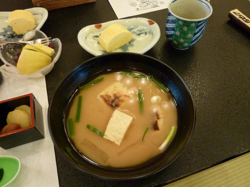 7時前に目が覚めた。さっそく朝風呂へ行きますか。広いお風呂には数人しかいないので、のんびりできる。今日は最終日、温泉をしっかり楽しみましょう。さっぱりしたぞ。部屋に戻り、朝ごはんへ。広い座敷の部屋にたくさんのテーブルが並んでおり、テーブルによって料理が違うようだ。われわれのテーブルはお雑煮朝食とやらで、白味噌仕立てのお雑煮やだし巻き卵、かますや太刀魚などどれも美味。ごはんをおかわりして、たっぷり栄養補給。