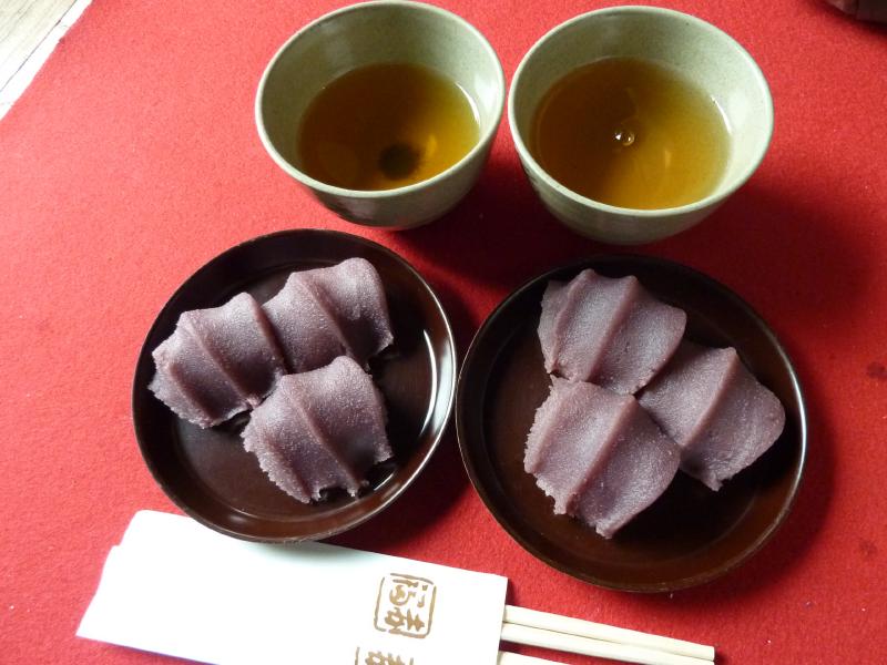 食後はデザート、伊勢と言えばやっぱり赤福でしょう。本店に行くとここもかなりの行列だが、回転は早いかな。中に入るとガラス越しに作っている様子が見える。手際よくどんどん出来ていくのがおもしろいな。ようやく座敷に上がれるのだが、ここも人でいっぱいだ。なんとか奥の縁側の方にちょうど空きを見つけたので一安心。しばらくして赤福が運ばれてきたぞ。それにしても久しぶりだなあ。できたてなので柔らかくておいしいですね。