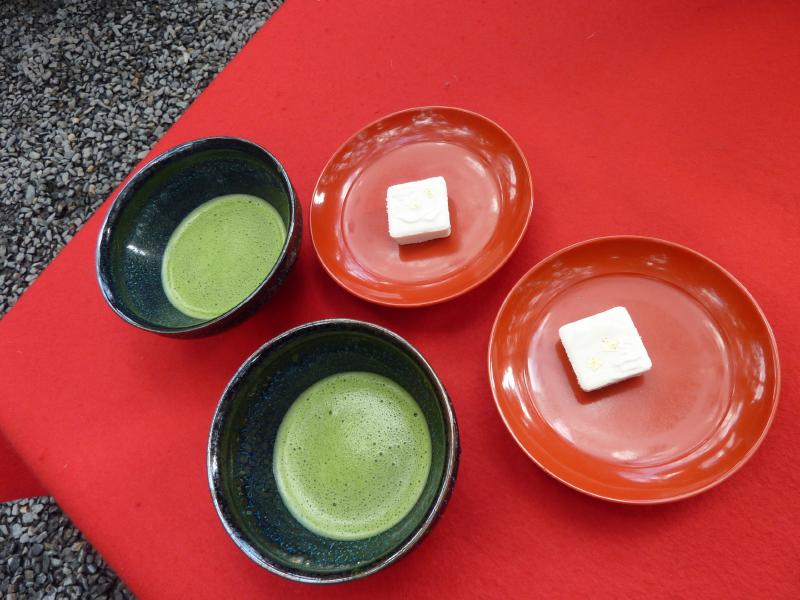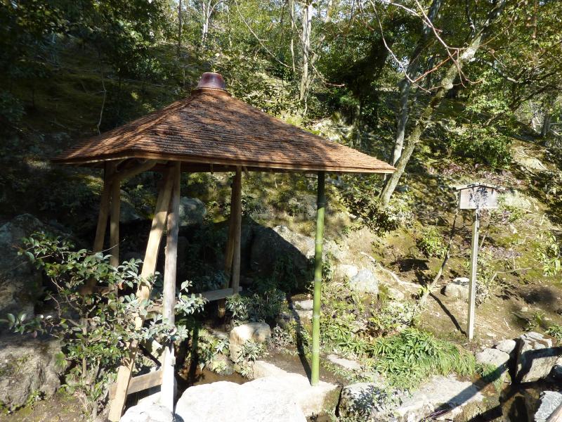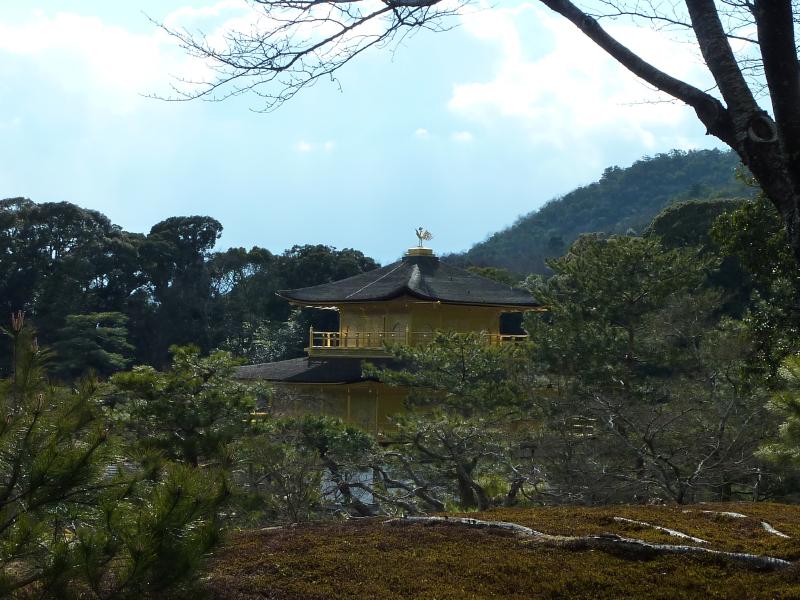 ぐるっと歩いてきた。少し高いところから見える金閣もまた、美しい。その先には夕佳亭があり、ここは茶室。ということでこの前に休憩できるところがあり、抹茶と和菓子でちょっと休憩。少し寒い中、温かい抹茶がおいしいですね。出口の近くにあった不動堂は、天正年間に建てられた金閣寺境内内で最も古い建物らしい。 |