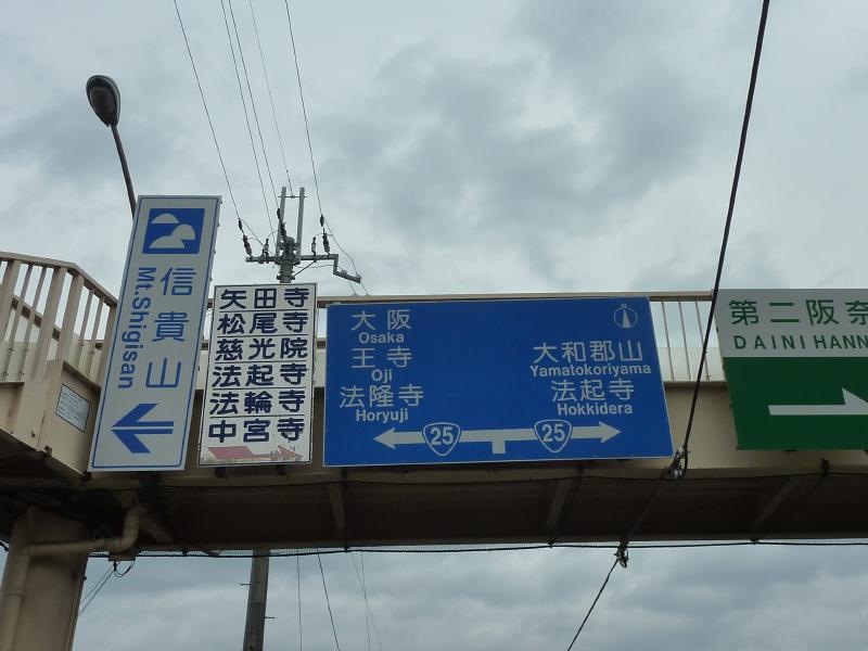 さて、では本来の目的を。大和路快速にのって、天王寺経由で法隆寺へ。乗ってしまえば40分ほど。意外と近いなあ。駅からは歩くと20分ほどなので、県道をぶらぶら歩く。国道25号にぶつかったところで左折すると、まもなく法隆寺の参道に到着。大阪からちょうど1時間ですね。