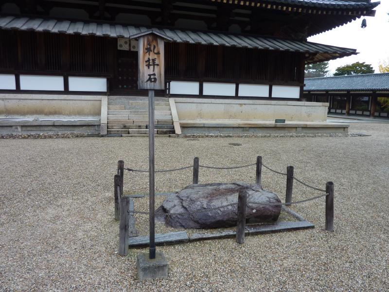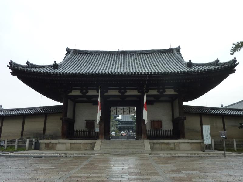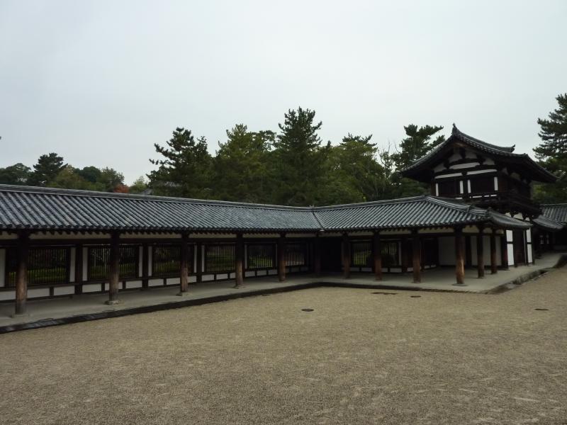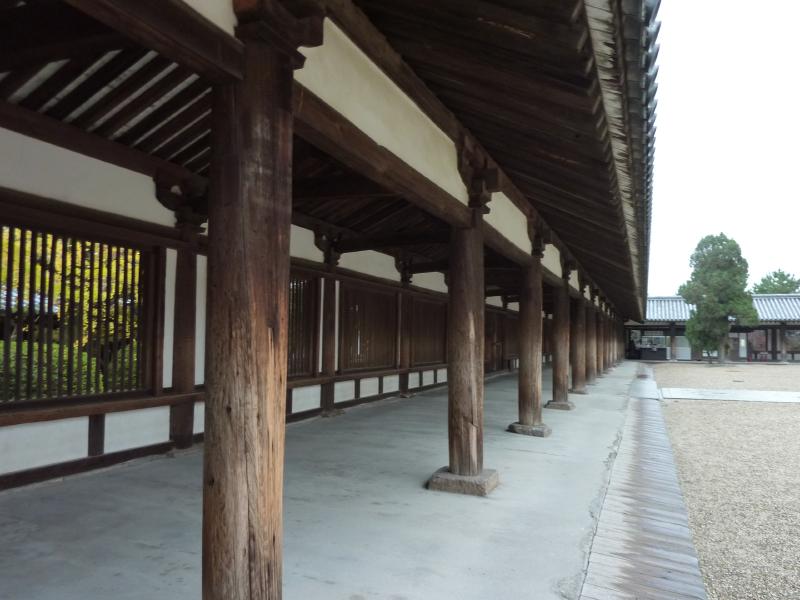 では、南大門から入りますか。門をくぐると、その先に五重塔が見えた。小学生以来、30数年ぶりになるのかな。そのまま進むと中門があり、この重厚な趣は飛鳥時代の建築様式。扉の左右には、奈良時代に造られた金剛力士像が鎮座している。中門から左右に伸びる回廊は格子状になっているので、中の様子がなんとなく見える。なにか深い歴史を感じさせるこの空気感、1993年に日本最初の世界文化遺産に登録されただけのことはありますね。