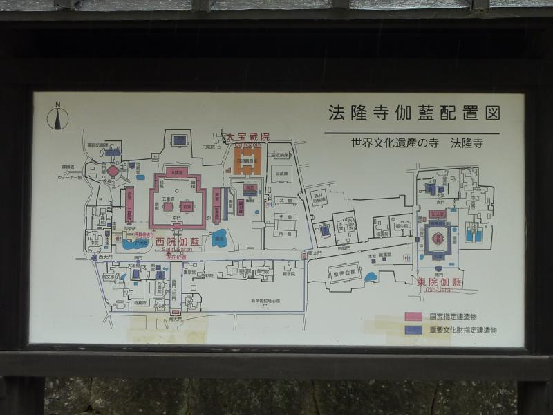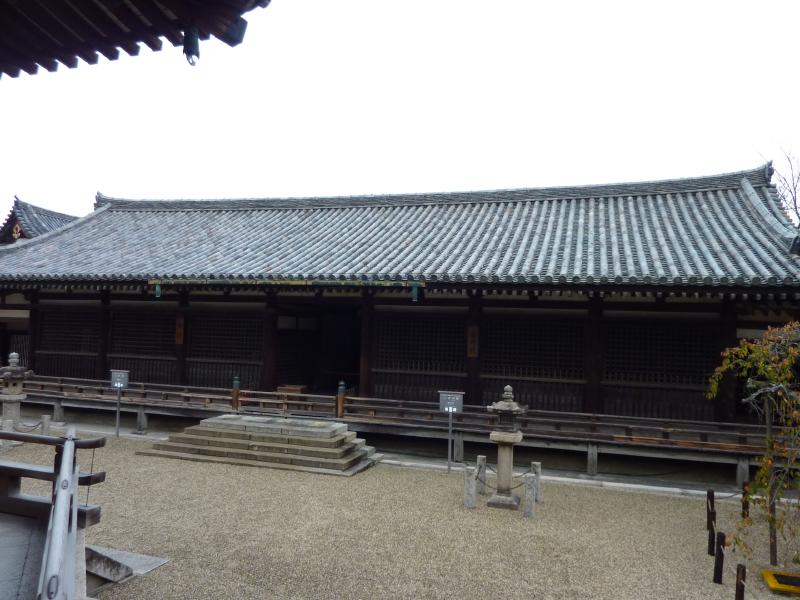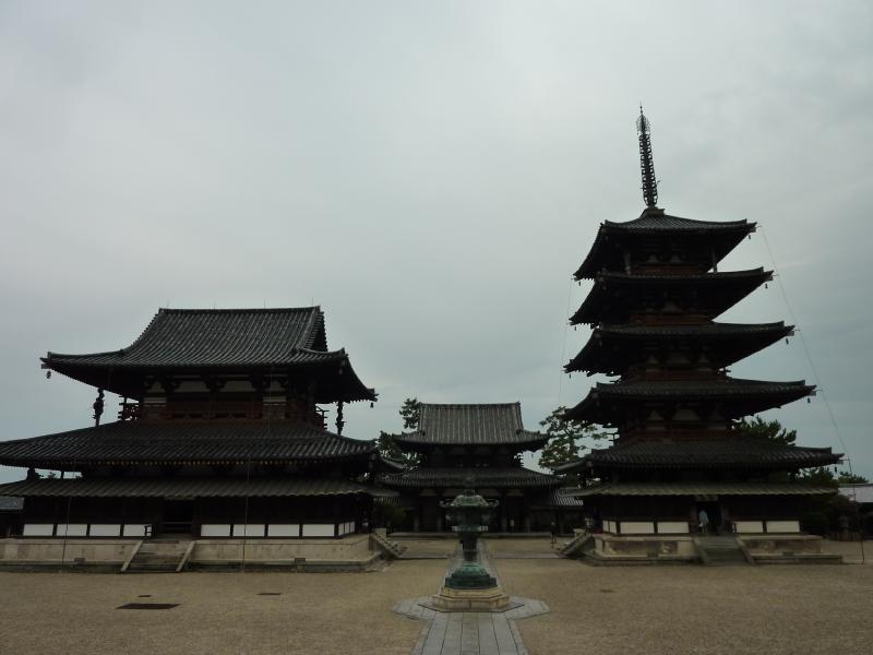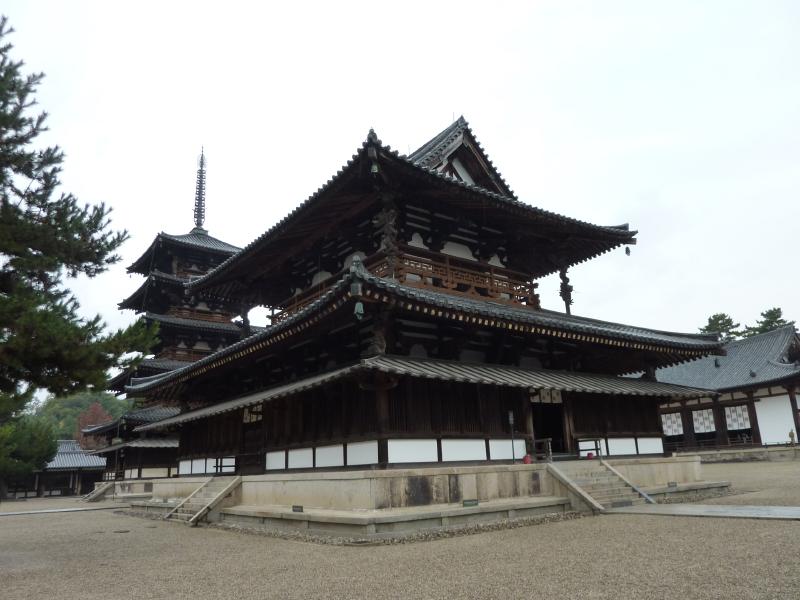 では五重塔を見に行こう。西院伽藍の中に入ると、そこには五重塔が聳えていた。世界最古の木造建築であり、日本最古の五重塔でもあるこの五重塔、高さ32.5メートルの偉容だ。その中には奈良時代に造られたという塑像群がある。やっぱり奈良は歴史があるなあ。子供の頃は気づかなかったが・・・回廊沿いを歩き、奥にあるのが大講堂。薬師三尊像と四天王像が安置されていて、写真は不可なので遠くから少しだけ。再び回廊沿いを歩くとそこは金堂。この中には本尊である釈迦三尊像・薬師如来像・阿弥陀如来像・四天王像などが安置され、その周りの壁には壁画が描かれている。でもこれは再現されたもので、原画は昭和24年に焼失したらしい。でも黒こげになった壁画は、法隆寺内の収蔵庫に保管されているらしい。