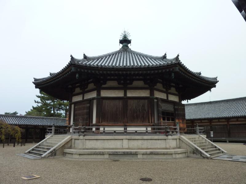 東院伽藍の入口である四脚門に到着。西院伽藍よりはこじんまりとしており、回廊を越えると中央に夢殿。ここは聖徳太子等身の救世観音像が安置されている。この夢殿の本尊は春と秋のみ特別公開しているらしいが、10/22〜11/22ということでなんと昨日まで。残念だ。まあこれはまたの機会で。聖徳太子を供養するための特別な殿堂ということだね。ここまでで、もうすぐ4時。思ったより時間がかかったので、隣にある中宮寺はもう閉門。