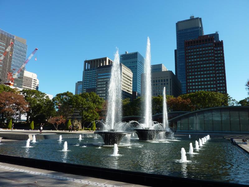 10時前、ホテルをチェックアウト。まずは東京駅へと向かおう。茅場町のホテルから、東京駅までは歩いてちょうどいい距離。道も広くて歩きやすいしね。東京駅に到着し、ロッカーに荷物を預ける。さて、どこに行こうかな。駅の本屋さんで情報を集めたところ、実はまだちゃんと訪れたことの無い皇居と靖国神社へと行くことに決定。一日散歩するのにちょうどいい感じの距離かな。工事中の東京駅を抜け、丸の内側に出る。駅前には長い行列ができていたが、これはモーターショーへ行く人がシャトルバスを待っている列だそうな。丸の内のビル群を抜けると、広く開けたところにきたぞ。