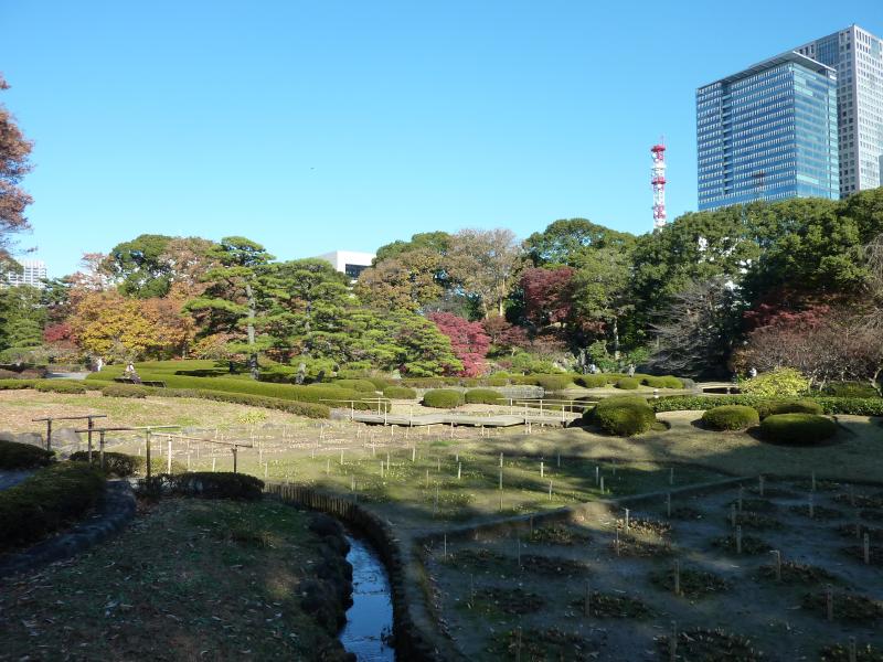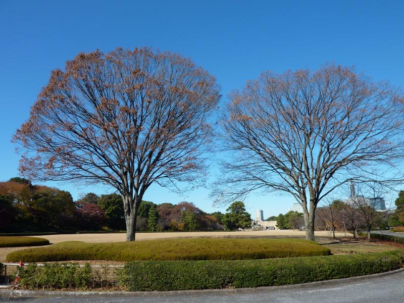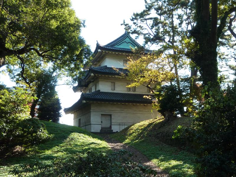 中之門から入り、大番所前を通ってさらに坂道を登る。大名達もこの坂道を登ったのかな。城壁の間を抜けると広いところに出た。かつてこのあたりから巨大な江戸城の本丸があったんだろうなあ。今では芝生の広場になっている。この広場の周りにはたくさんの緑の区画があり、果樹園や茶畑、バラ園、竹林など四季折々の変化が楽しめるようになっている。桜もきれいだろうな。そんな中、是非見ておくべきは富士見櫓。この本丸地区で現存する唯一の櫓で、遺構の中では最も古いものと言われている。それにしても、この辺りから見える丸の内のビル群はなんだか不思議な景色だな。過去と現在が交差しているような、不思議な感覚になる。