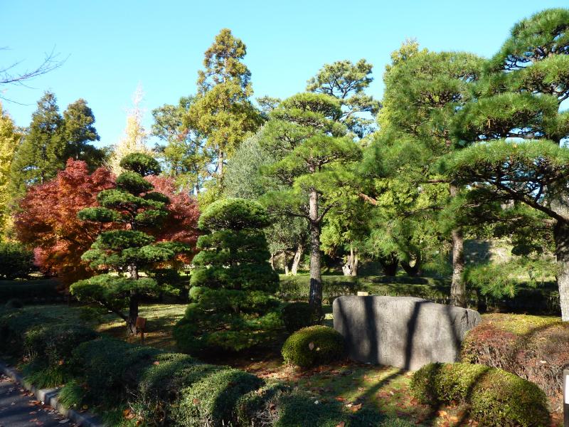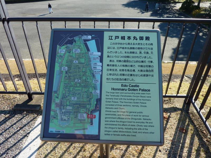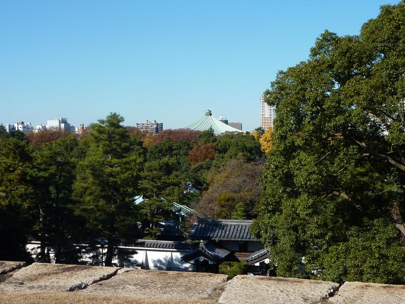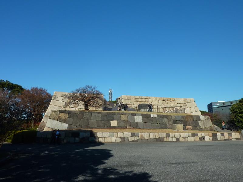 天守台が見えてきた。かつてあった天守閣は1657年に火災によって焼失し、その後再建されることはなかったとのこと。石垣に登って見渡して見よう。この広場の手前あたりには大奥があったわけだ。映画やドラマなど、様々な場面でみる大奥、それがここにあったのですね。いろんなシーンが思い出されます・・・濠の外側を見ると、武道館の屋根が見える。あれがいわゆる大きな玉ねぎ、ですね。天守台の近くには桃華楽堂があり、これは香淳皇后の還暦をお祝いして建設された音楽堂とのこと。今はどんな風に使われているのかな?これで本丸エリアは一通りまわったことになる。では二の丸庭園へと向かいますか。