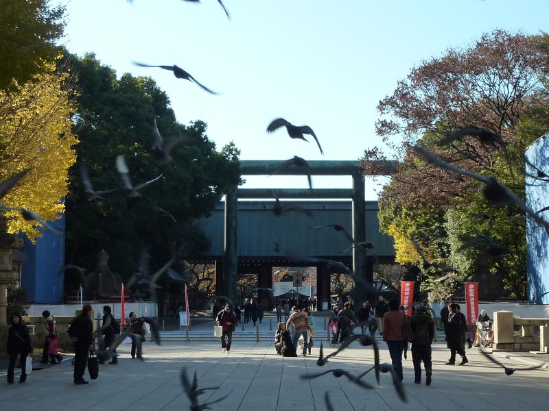 中門鳥居を越えると、いよいよ拝殿だ。政治的にはいろんな考え方があるようだが、そんなことは関係なくこれまでの日本を築いてきた先達を祀る場所として、戦地において志半ばで命を散らせた若者達を弔う場所として、日本人として戦い亡くなった東アジアの人々を慰める場所として、心を込めてお詣りをしたい。ここ靖国神社はその創建の目的として「国家のために一命を捧げられたこれら人々の霊を慰め、その事績を後世に伝える」とあるとのことなので、それはしっかりと意識しておきたい。
